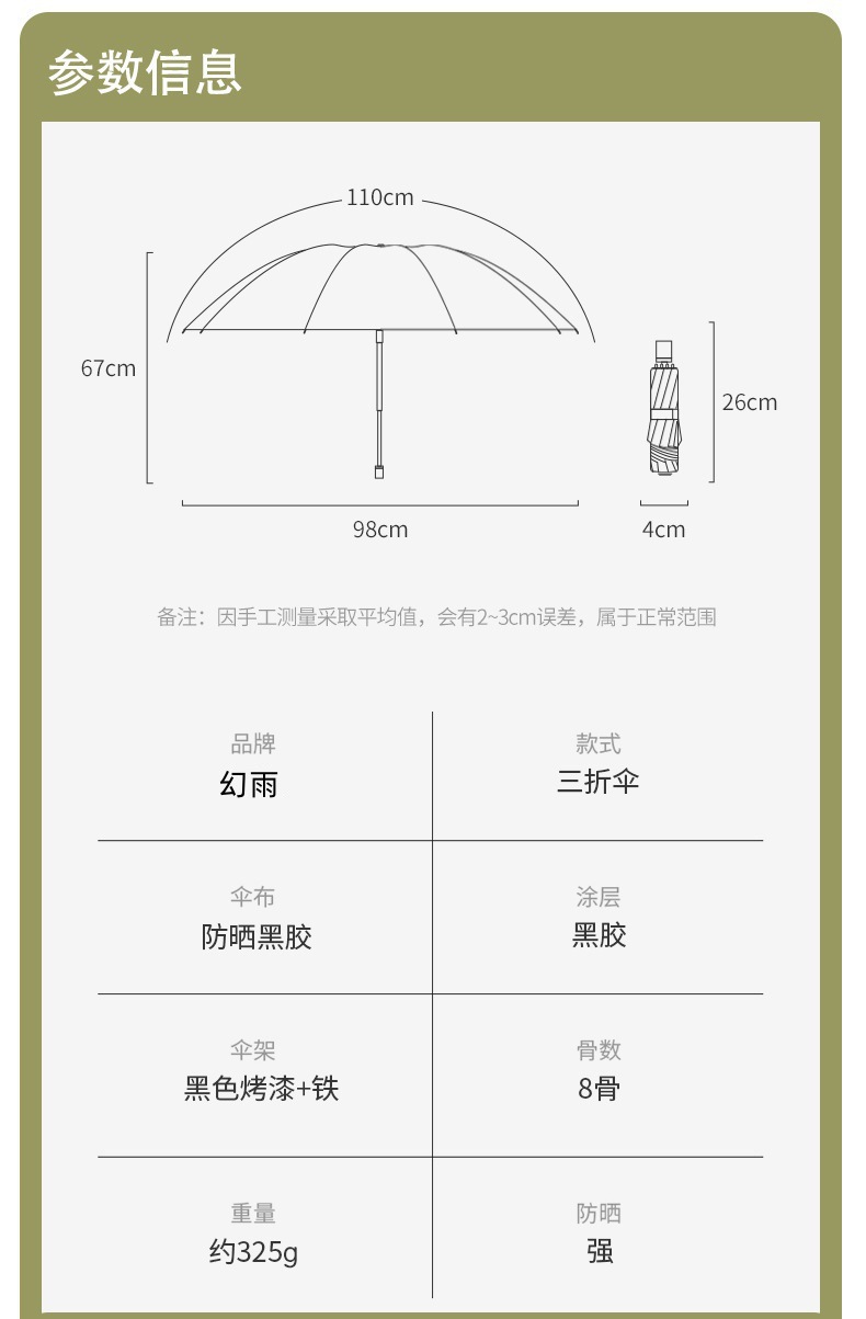 本公司专业定制各类广告伞,外贸伞,雨伞,折叠伞,晴雨伞,太阳伞,遮阳伞,自动伞,广告伞,高尔夫伞,直杆伞,长柄伞,迷你伞,儿童伞,数码印伞,酒瓶伞,拐杖伞,户外太阳伞,遮阳伞,沙滩伞,大伞固定底座,四角帐篷,折叠帐篷,旅游帐篷,雨衣等产品。 量大从优!!!