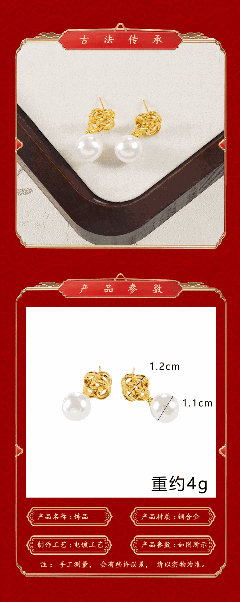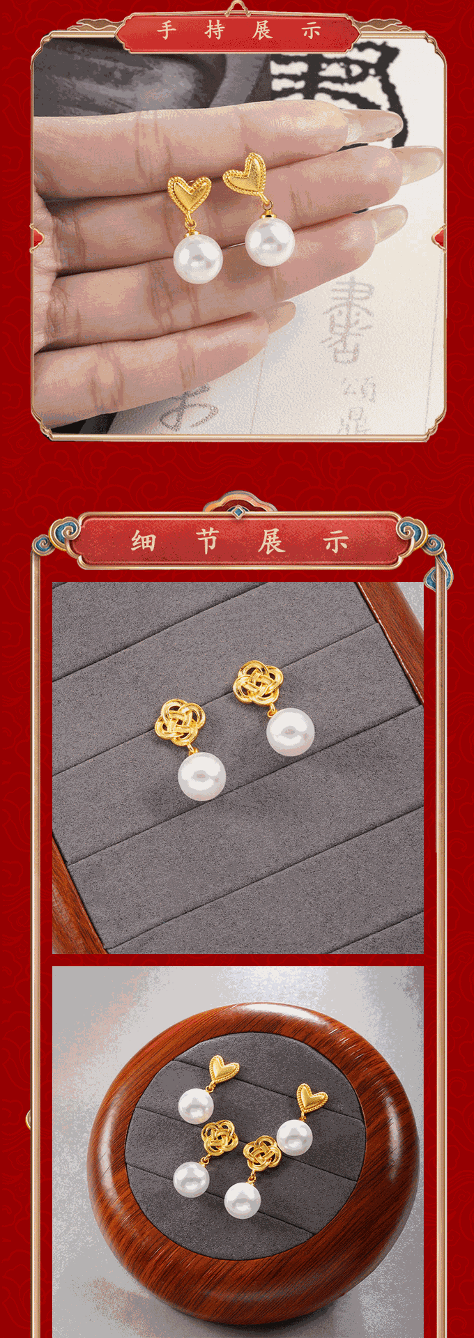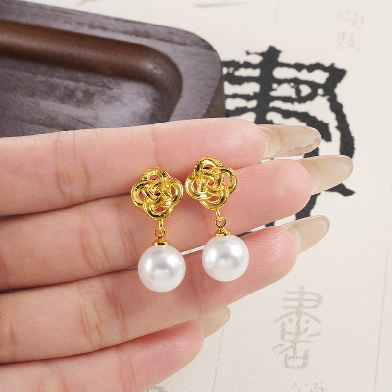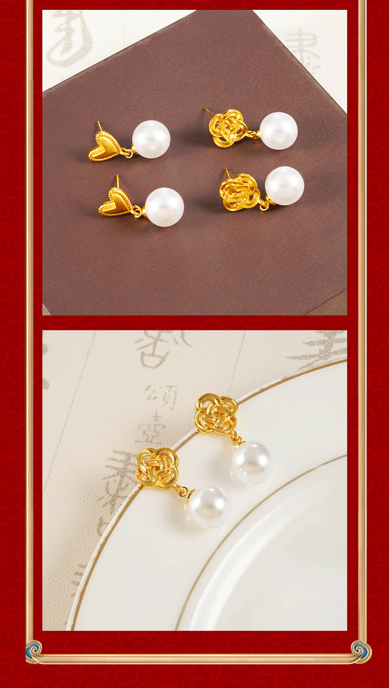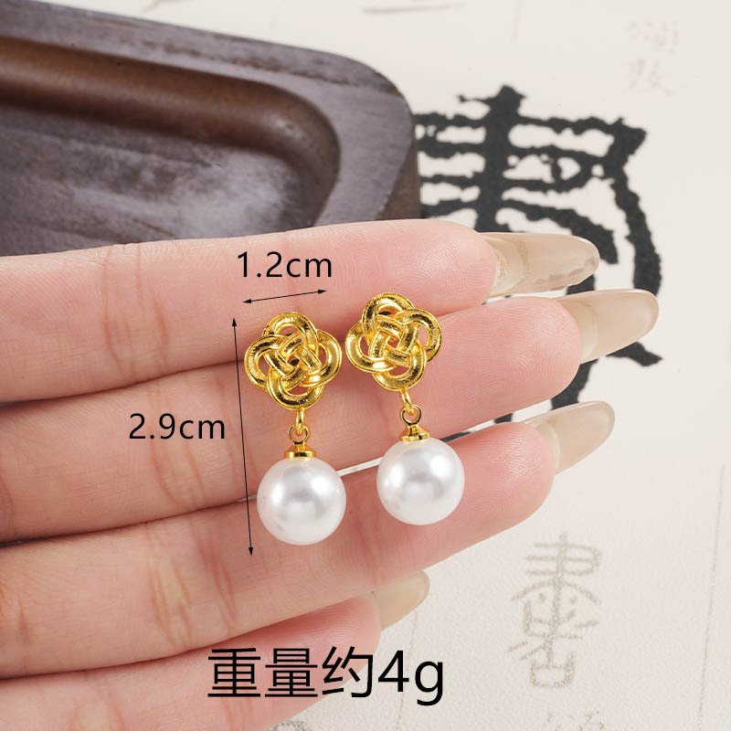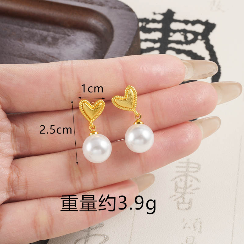 奢华镶仿珍珠爱心耳坠女潮流越南沙金如意结耳钉仿金久不掉色首饰 English | 投诉