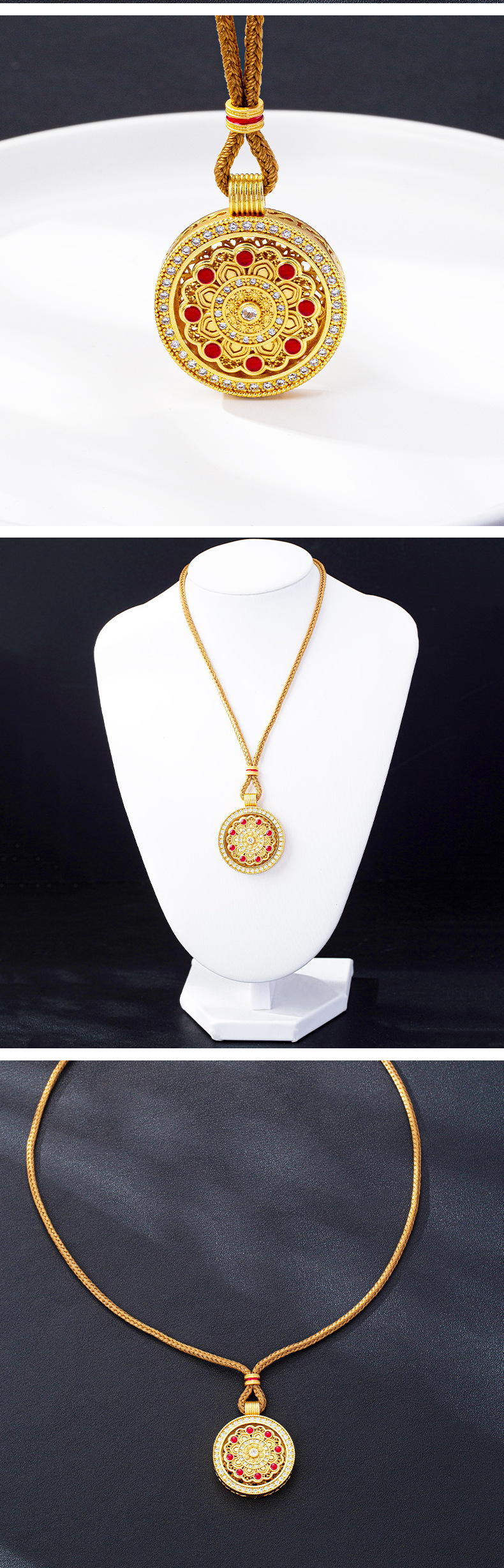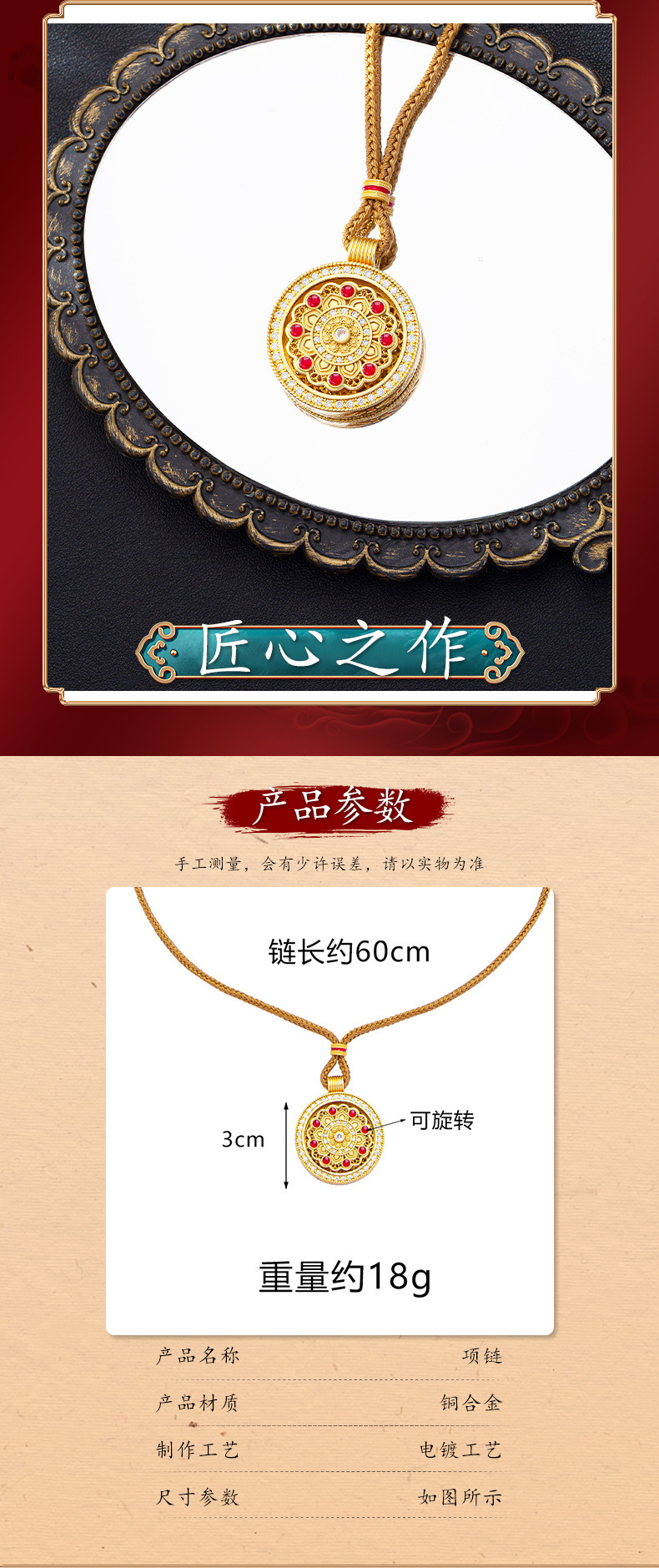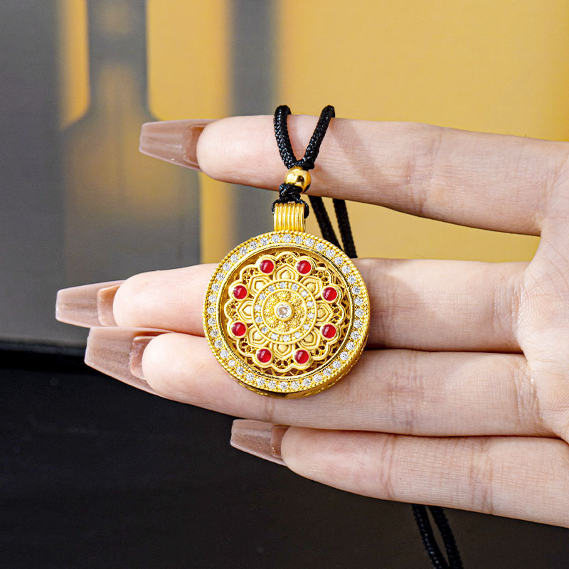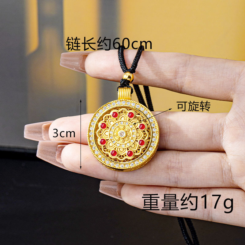民族风镶钻镂空可旋转圆牌吊坠复古越南沙金项链国潮久不掉色饰品 English | 投诉