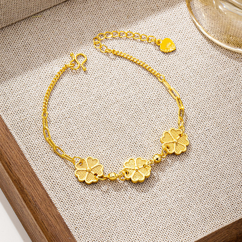 爆款越南沙金五叶花手链女轻奢风百搭花朵手串设计感久不掉色饰品