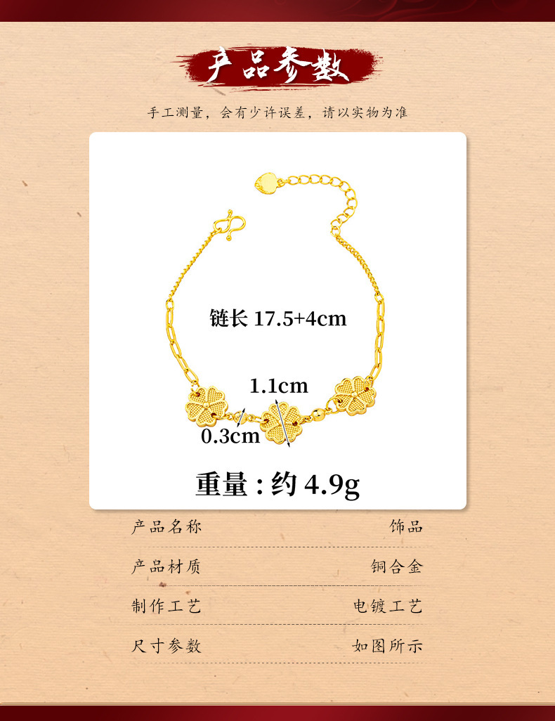 爆款越南沙金五叶花手链女轻奢风百搭花朵手串设计感久不掉色饰品 English | 投诉