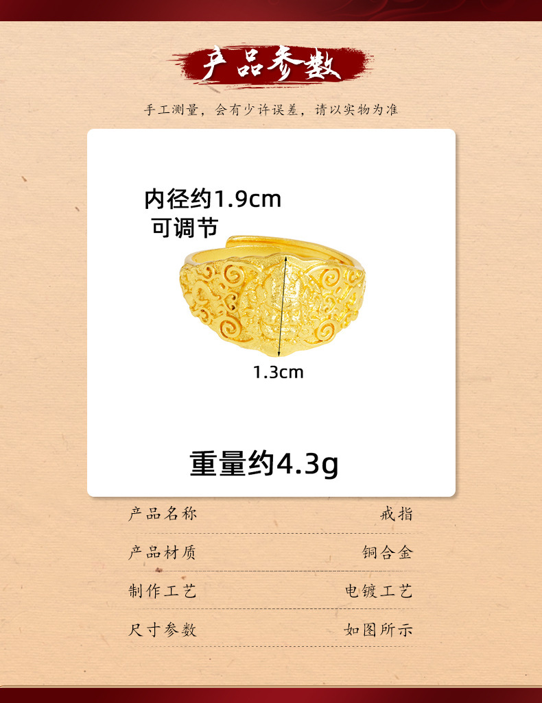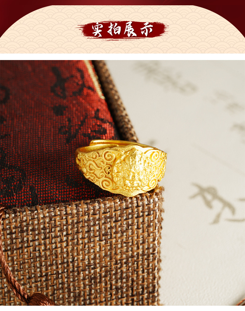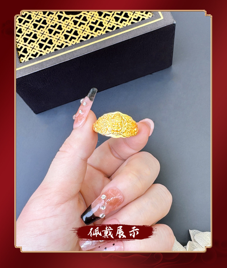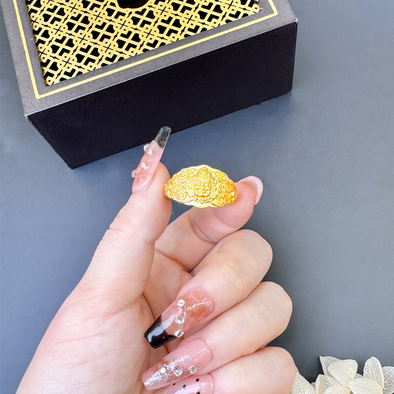 越南沙金罗汉戒指中国风国潮复古宽戒指环手饰品久不掉色配饰批发 English | 投诉