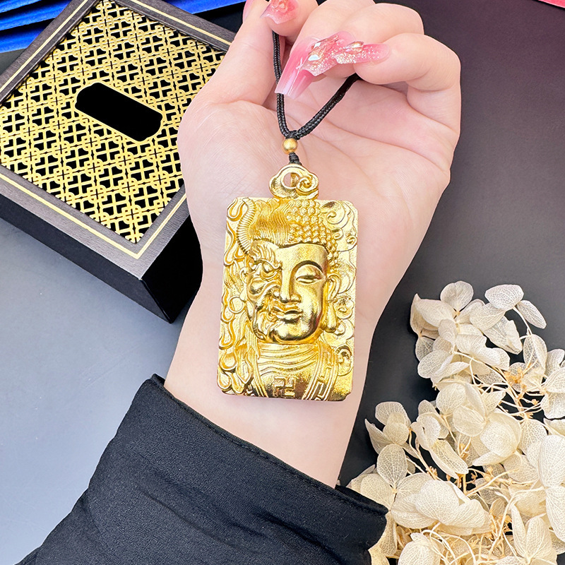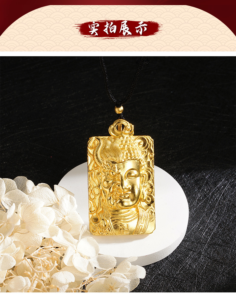 越南沙金佛头地藏黑绳项链半脸方牌男女国潮中国风直播爆款货源 English | 投诉