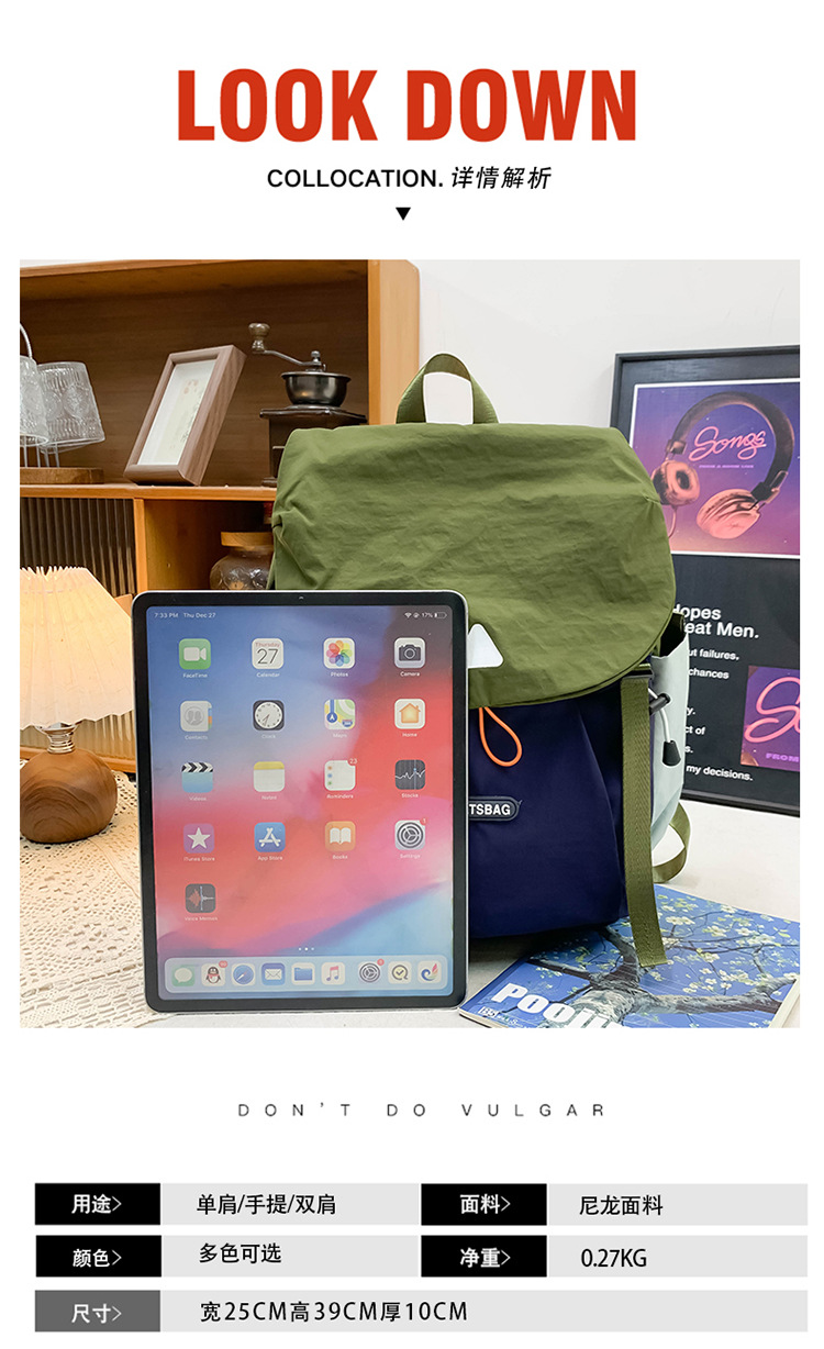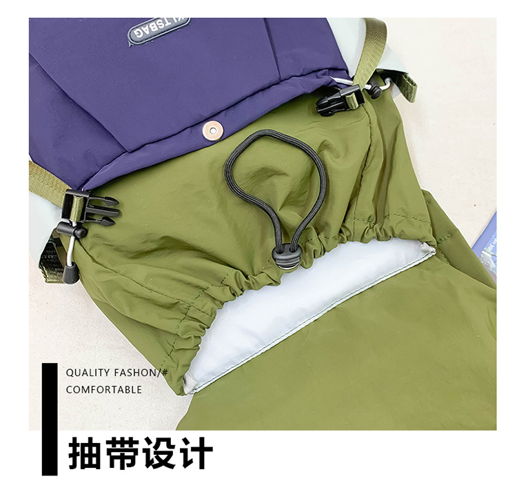 材质: 尼龙 功能: 透气,扩容,减负,可收纳,护脊,其他 里料质地: 涤纶 背负系统: 气垫背带 品牌: 四喜丸子 风格: 摩登潮酷 适用性别: 中性/男女均可 图案: 字母 货号: 8888 流行元素: 字母,车缝线,撞色,拼接,锁扣,其他 形象: 户外露营风 有可授权的自有品牌: 是 上市年份季节: 2025夏季 颜色: 绿色,蓝色,紫色 适用场景: 日常搭配 适用学龄: 小学 重量: 0.35 kg/个
