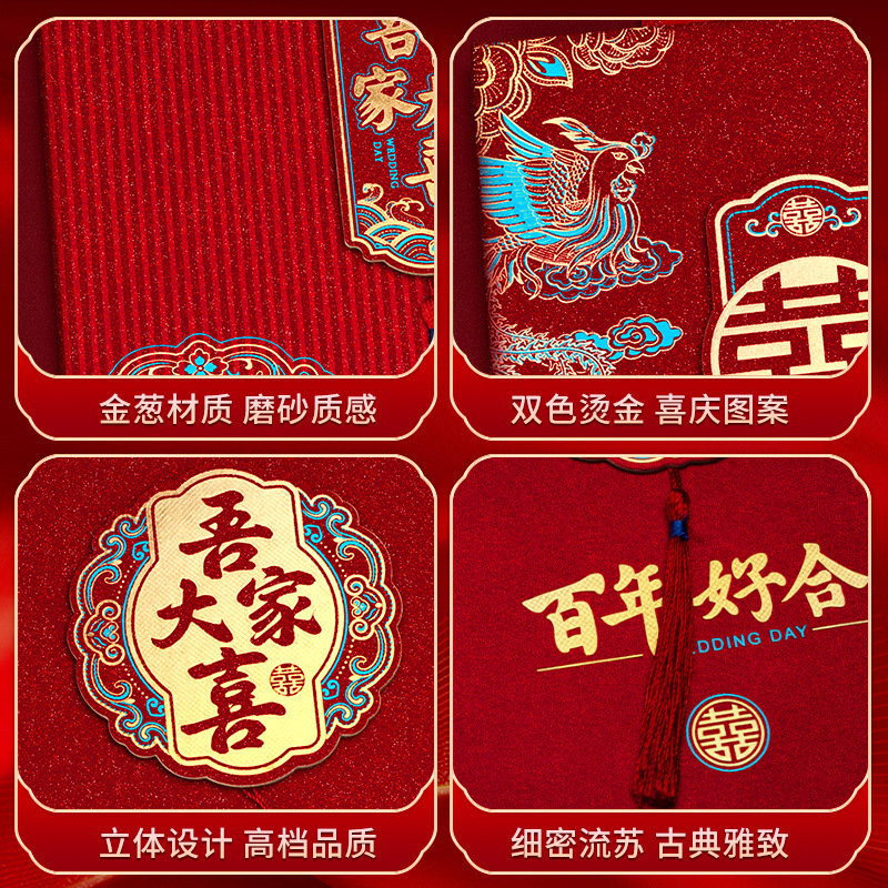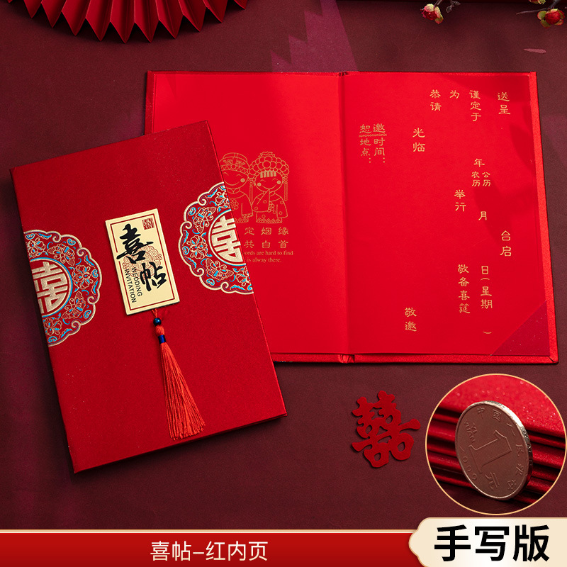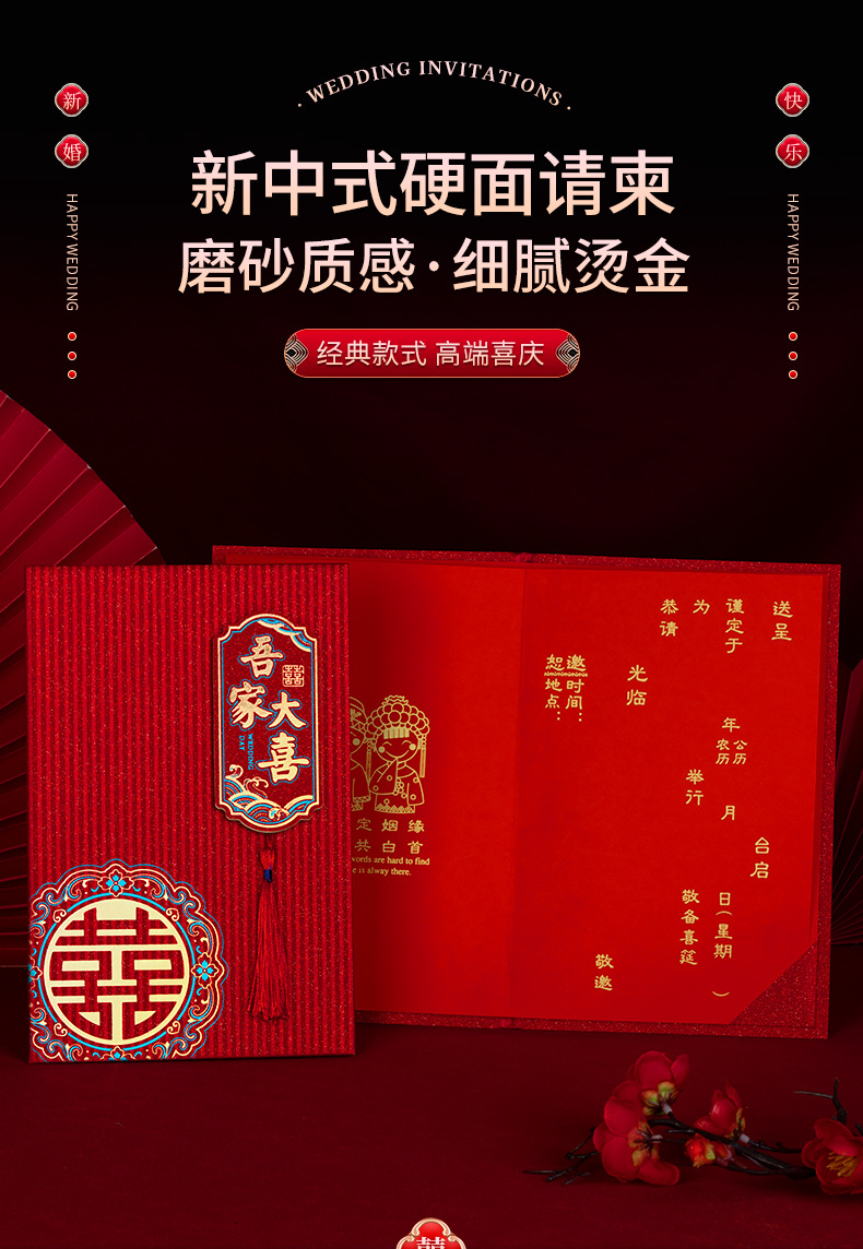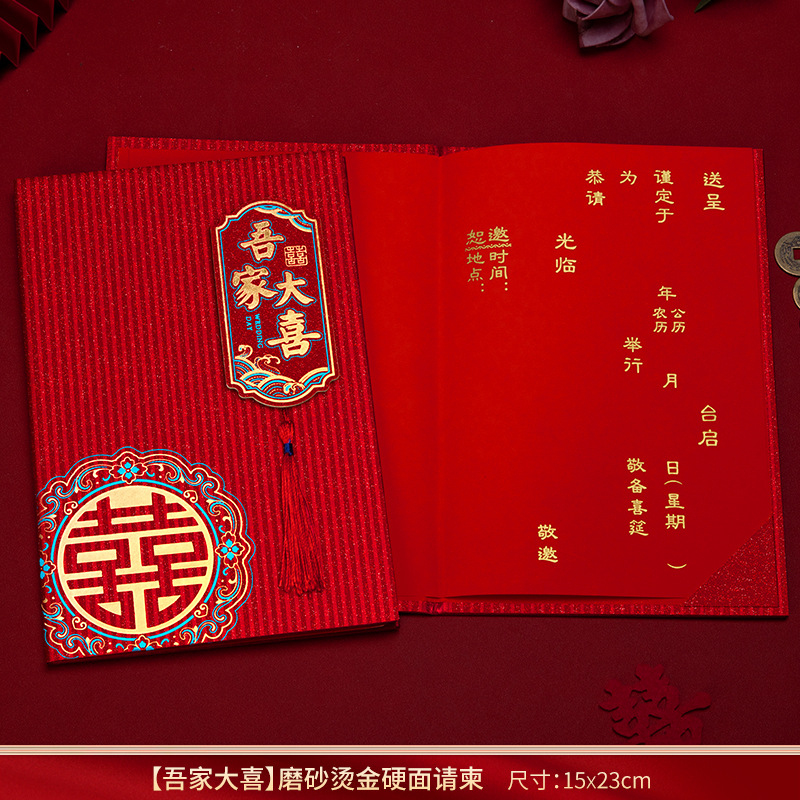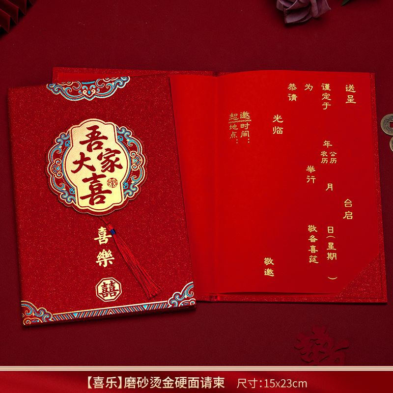 磨砂烫金硬面流苏请柬-家有喜事【1个装手写版】 ¥318 184件可售