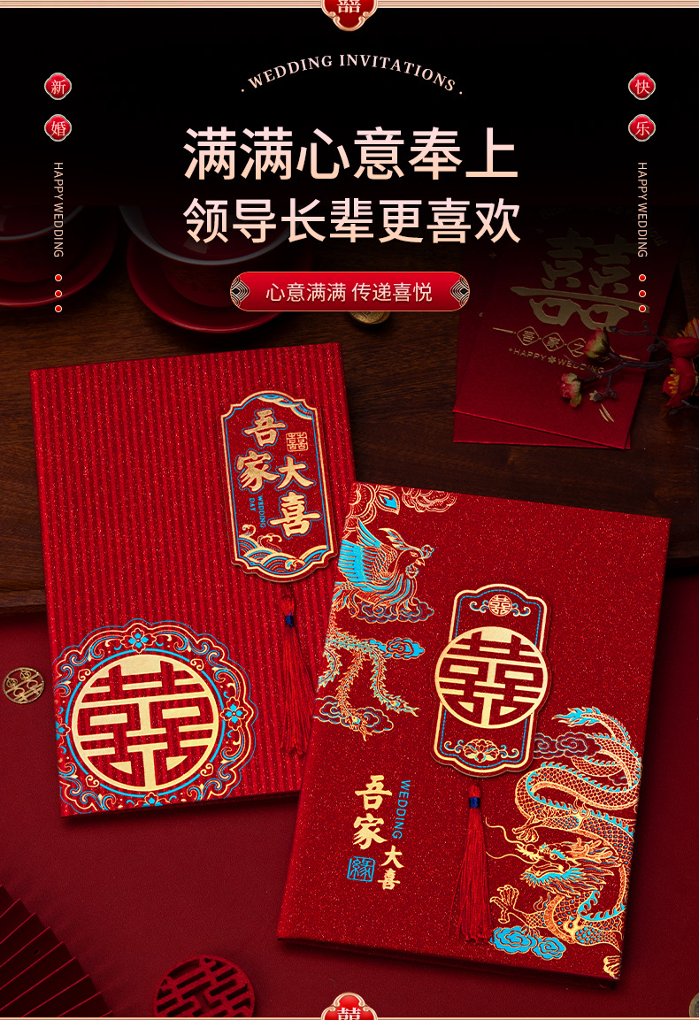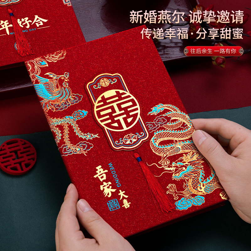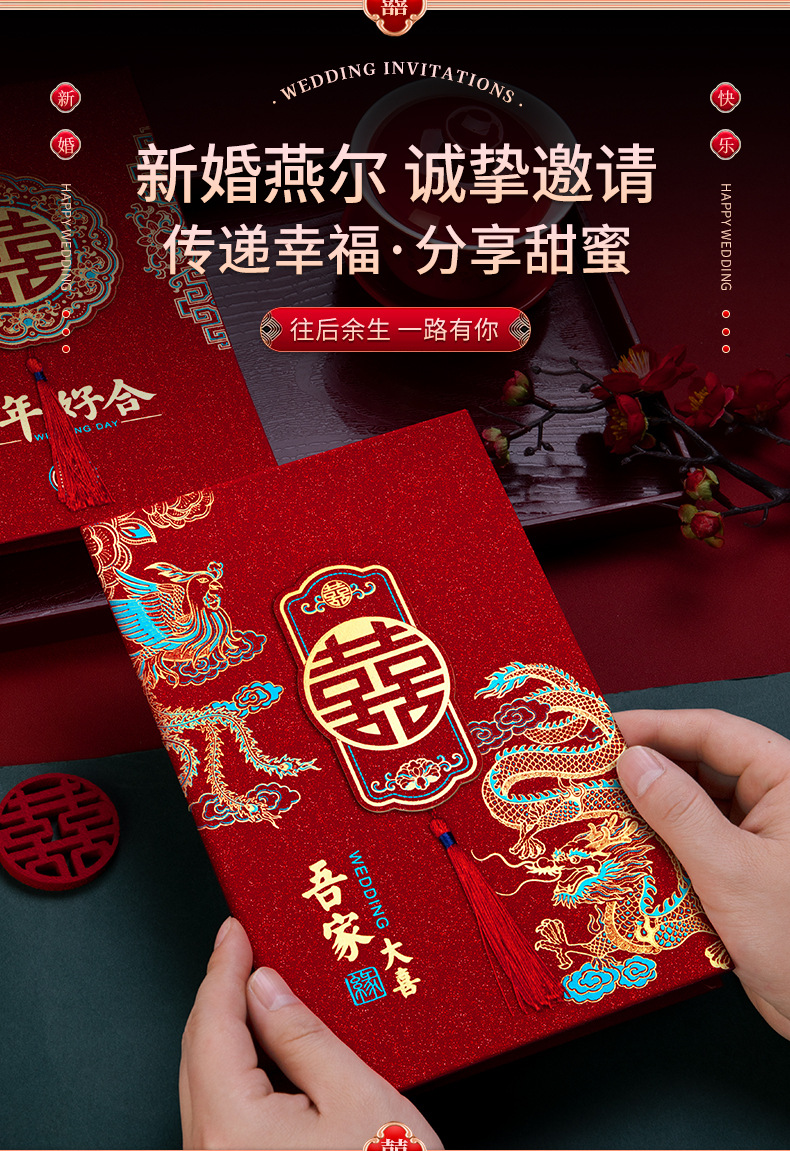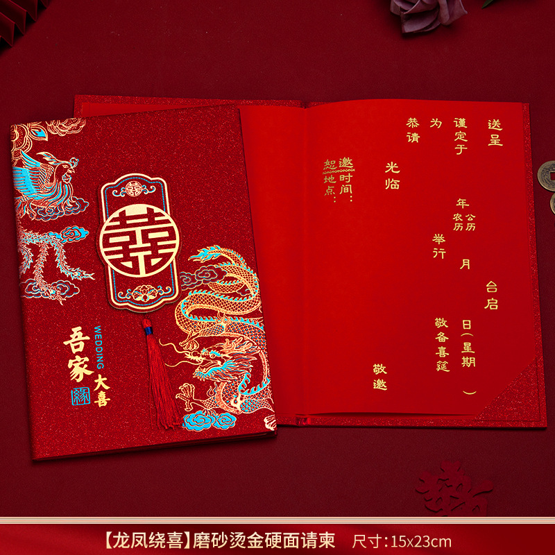 磨砂烫金硬面流苏请柬-龙凤绕喜【1个装手写版】 ¥260 482件可售