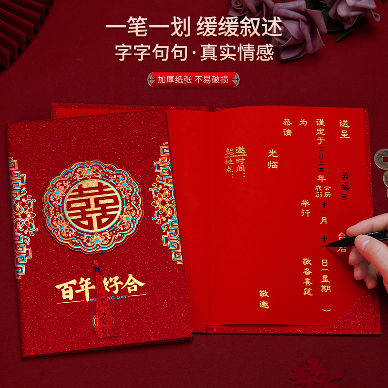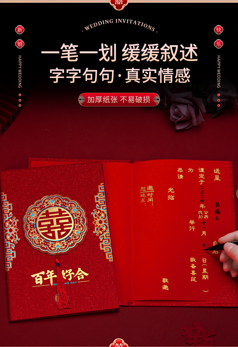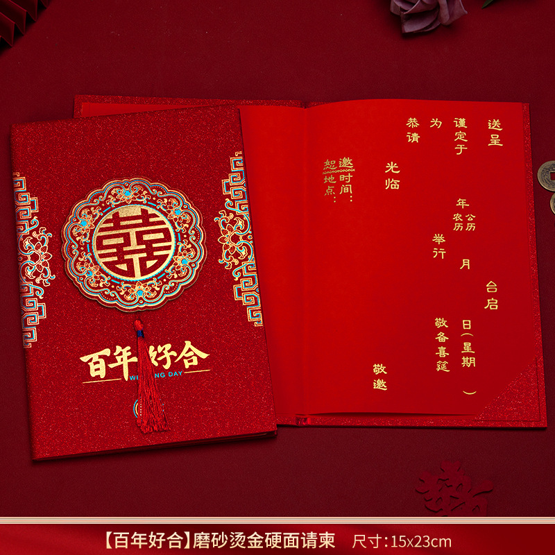 磨砂烫金硬面流苏请柬-百年好合【1个装手写版】 ¥260 109件可售