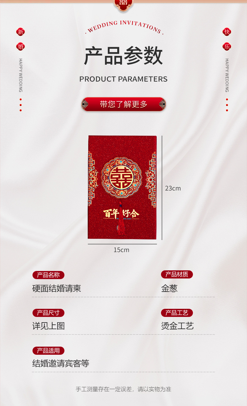 类别: 礼宾簿 材质: 纸 品牌: 红妆 尺寸: 23 包装: 无 货号: 结婚请柬硬质 是否进口: 否 产品编号: 结婚请柬硬质 是否专利货源: 否 是否跨境出口专供货源: 否 是否属于礼品: 否 重量: 0.5 kg/件