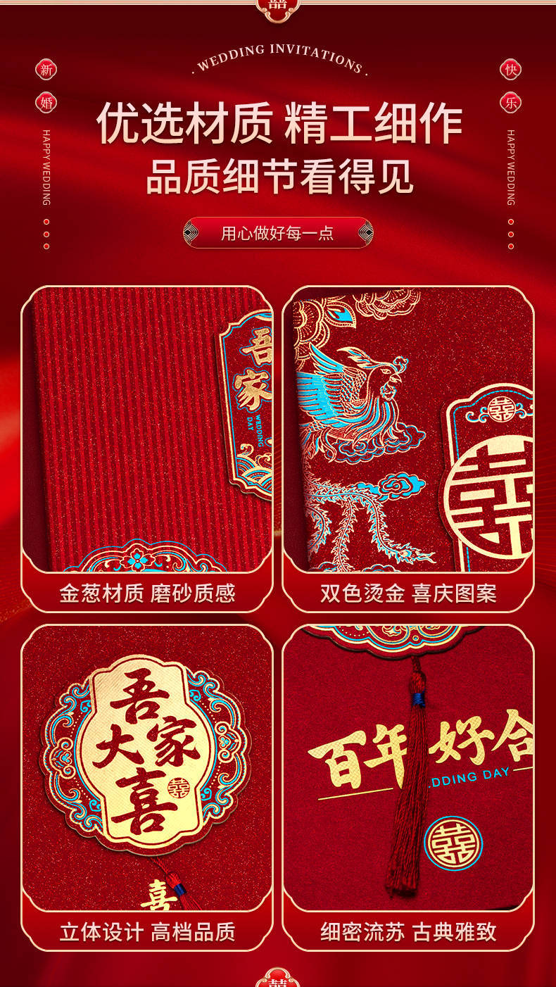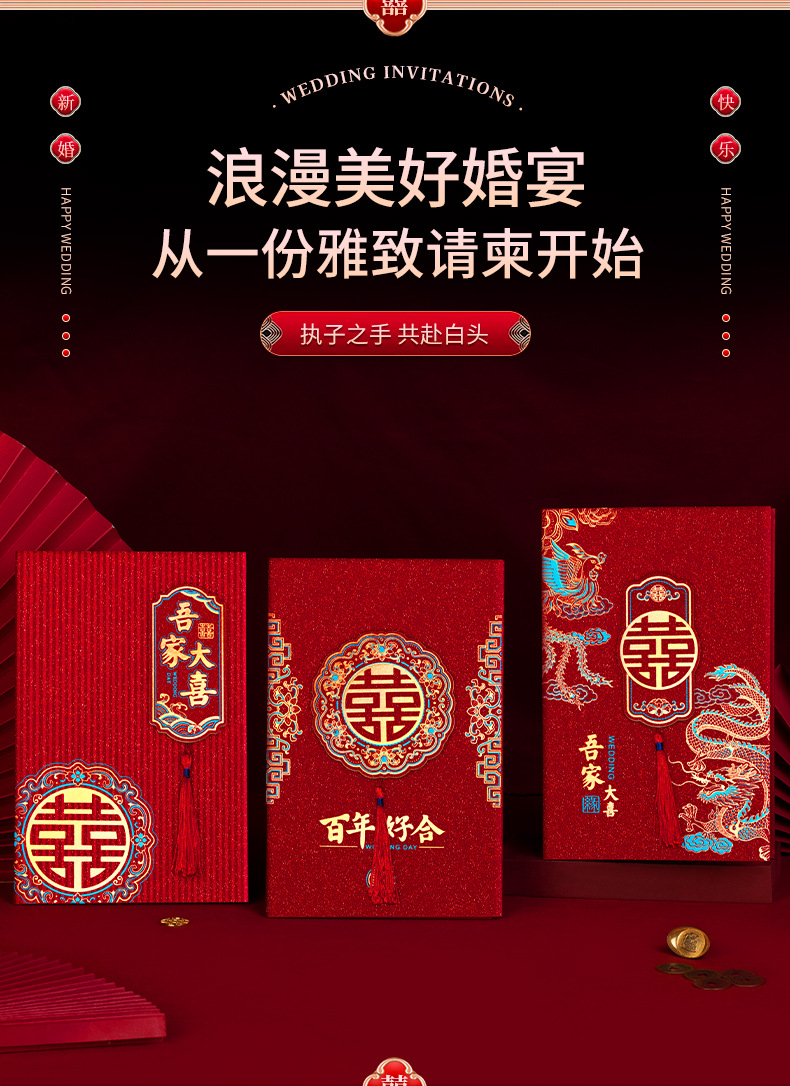 请帖结婚邀请函新款磨砂高级感大气小众婚宴喜帖中式纸质婚礼请柬 English | 投诉