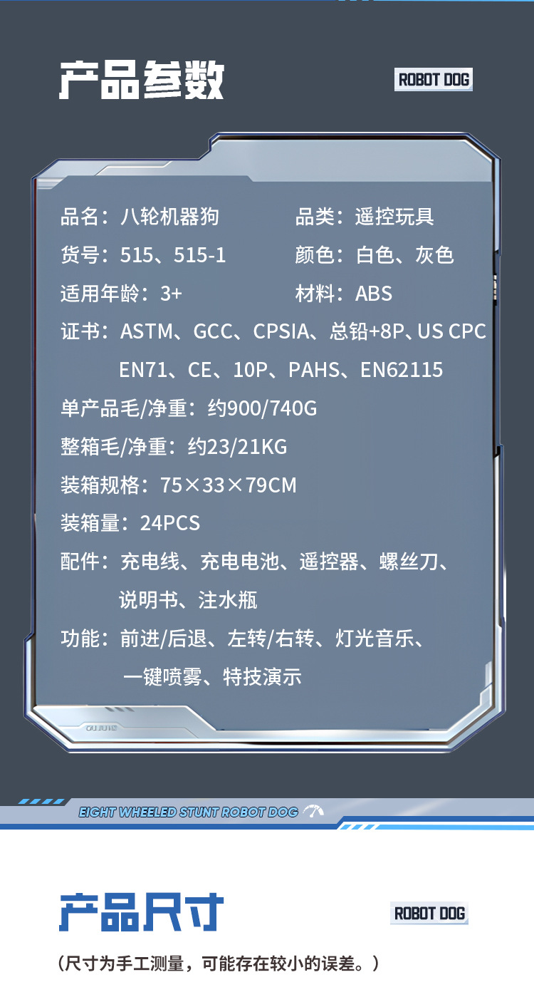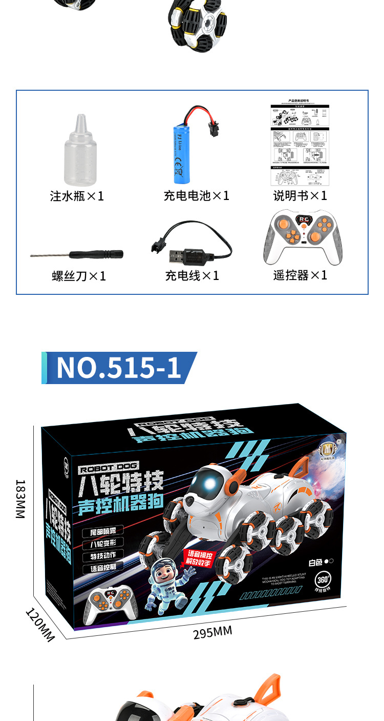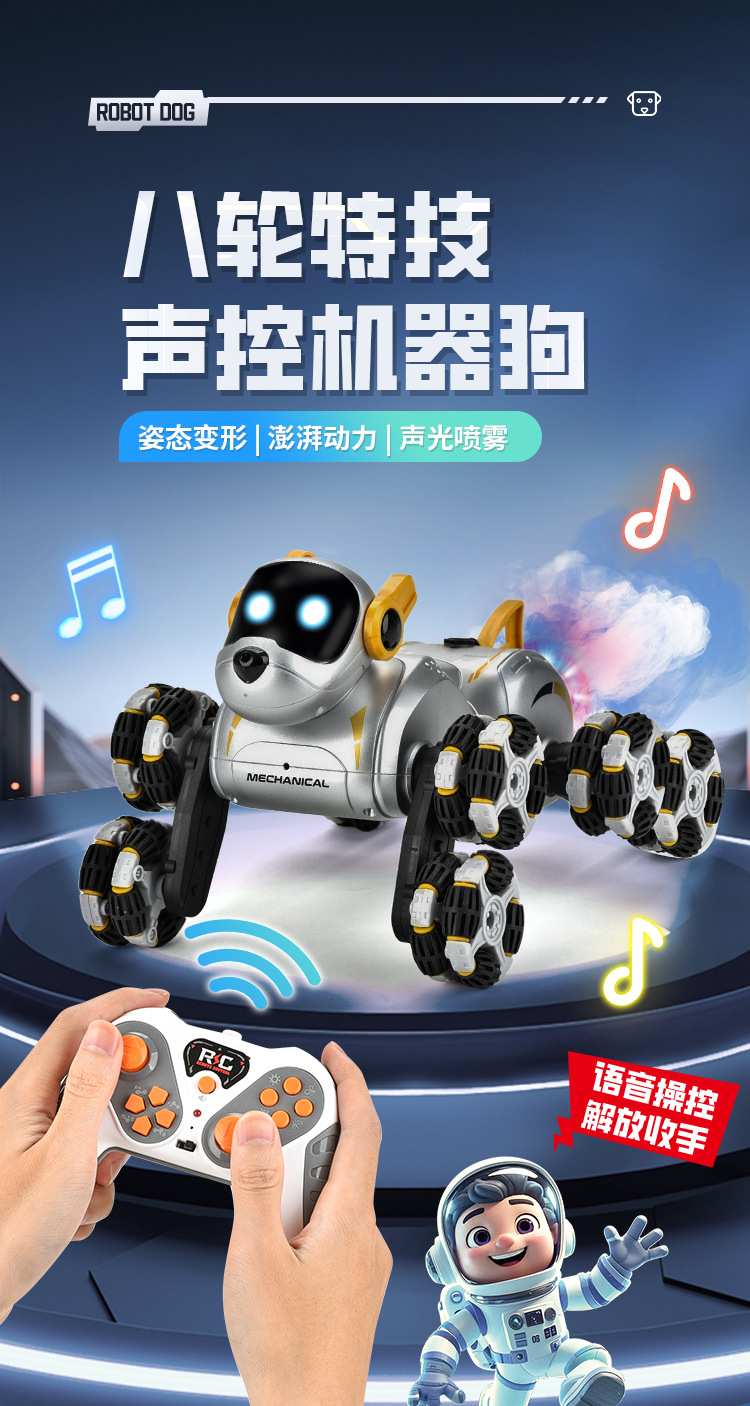 智能语音机器狗八轮特技遥控汽车手势感应玩具车男孩儿童礼物