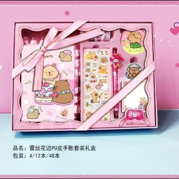 儿童礼盒装64k手账套装PU花边可爱学生手账贴纸组合文具手账本套 投诉