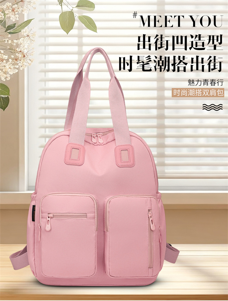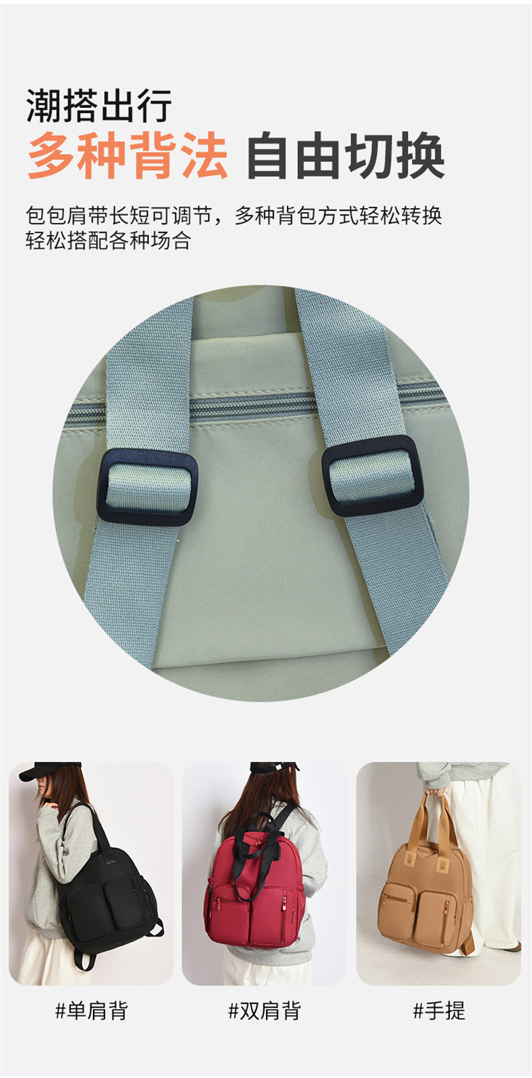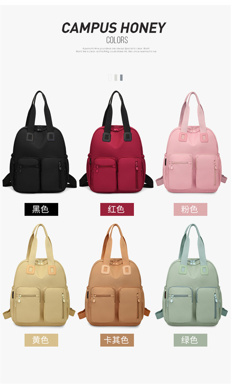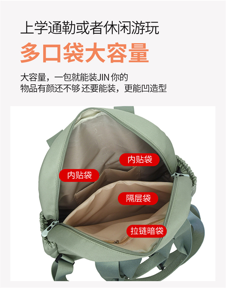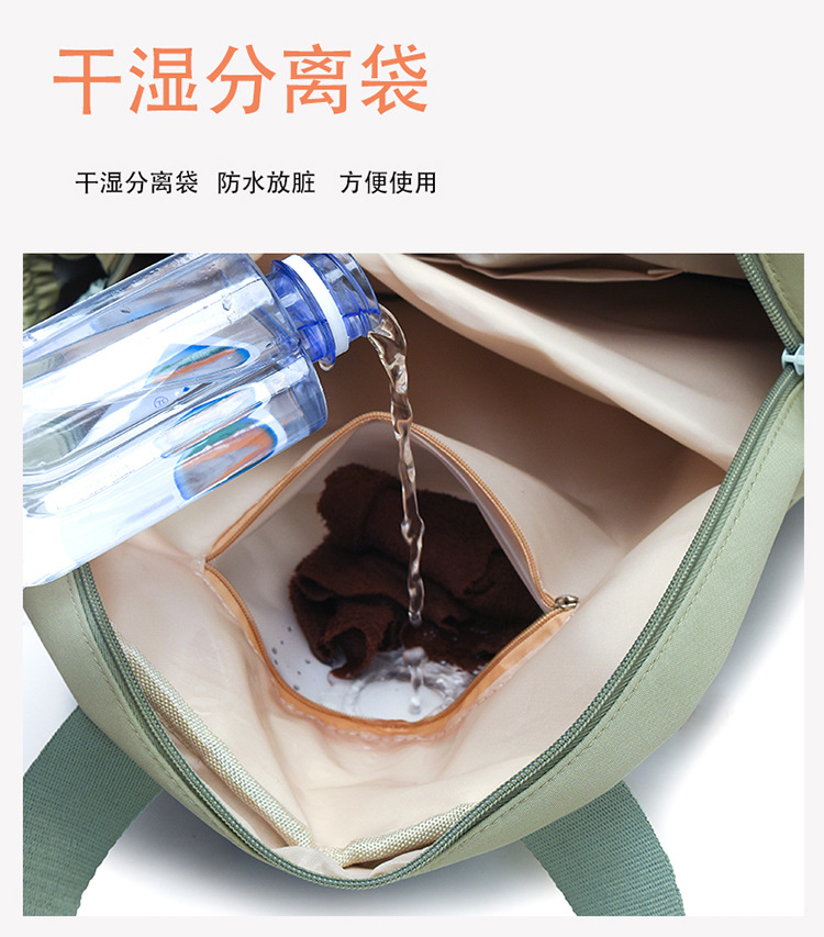 材质: 牛津布 功能: 干湿分离 里料质地: 涤纶 皮质特征: 其它 容纳电脑尺寸: 14英寸 容量: 20L以下 适用性别: 女 品牌: 嘉沁 颜色: 黑色,红色,粉色,黄色,卡其色,绿色 适用场景: 日常搭配 风格: 休闲旅行 上市年份季节: 2026年春季 货号: 鼎丰603 图案: 纯色 流行元素: 车缝线 背负系统: 弧形肩带 有可授权的自有品牌: 否 重量: 0.68 kg/个