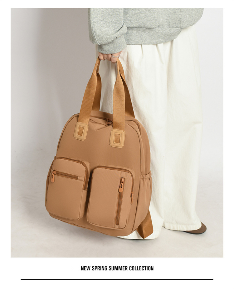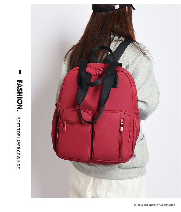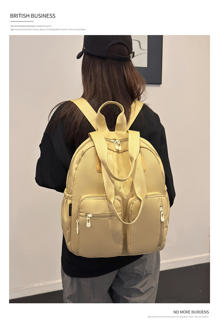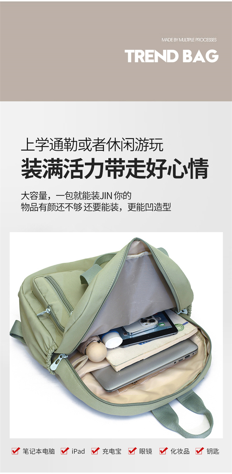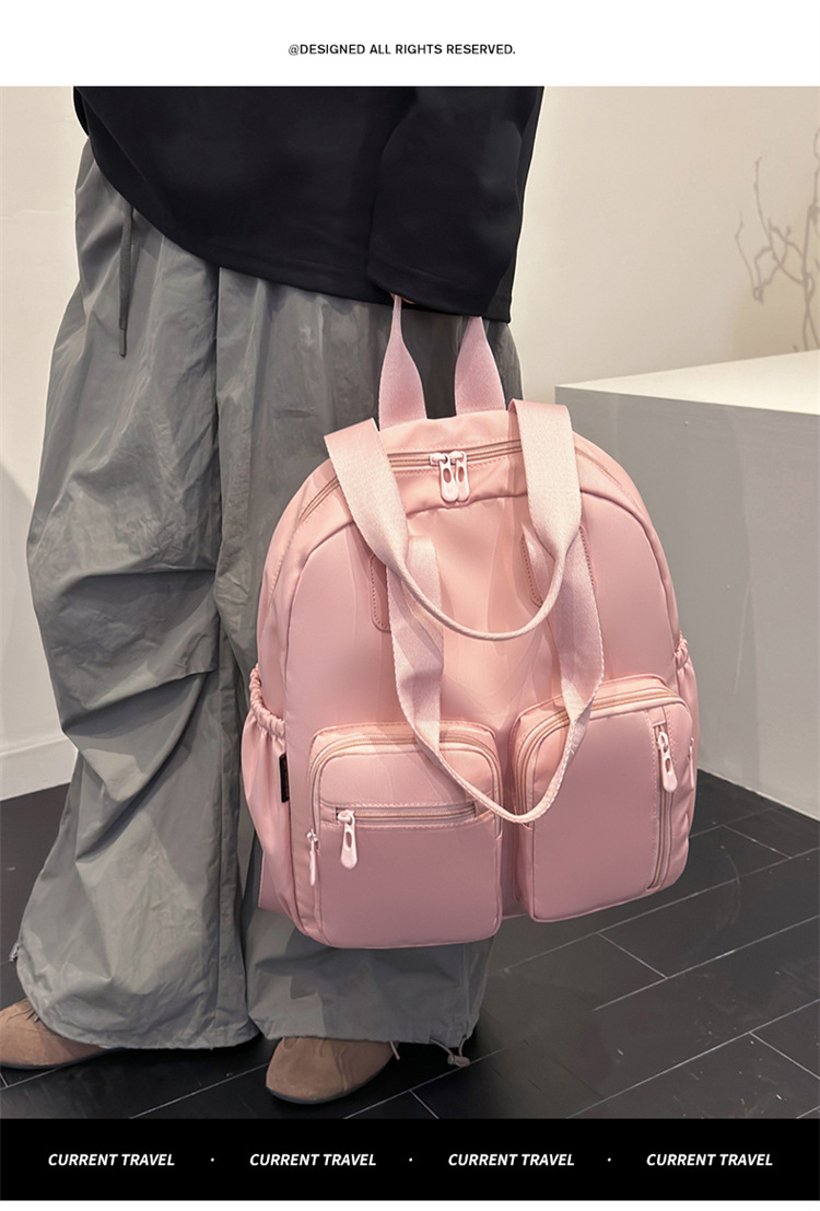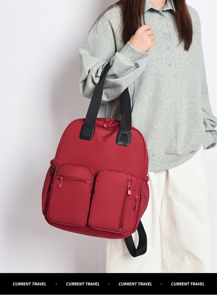 材质: 牛津布 功能: 干湿分离 里料质地: 涤纶 皮质特征: 其它 容纳电脑尺寸: 14英寸 容量: 20L以下 适用性别: 女 品牌: 嘉沁 颜色: 黑色,红色,粉色,黄色,卡其色,绿色 适用场景: 日常搭配 风格: 休闲旅行 上市年份季节: 2026年春季 货号: 鼎丰603 图案: 纯色 流行元素: 车缝线 背负系统: 弧形肩带 有可授权的自有品牌: 否 重量: 0.68 kg/个