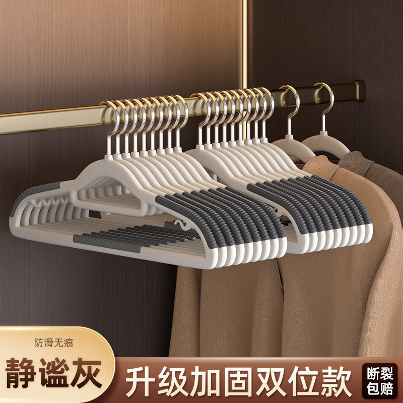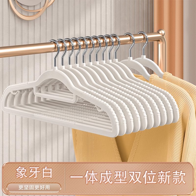 十个装双位衣架无痕不起肩塑料收纳衣架加粗加厚干湿两用家用衣架 English | 投诉