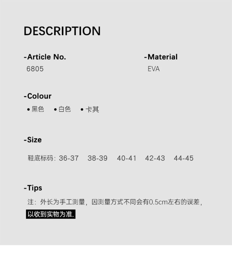 7:温馨提示:EVA材质拖鞋需避免高温暴晒,长时间高温会导致鞋子产生变形。