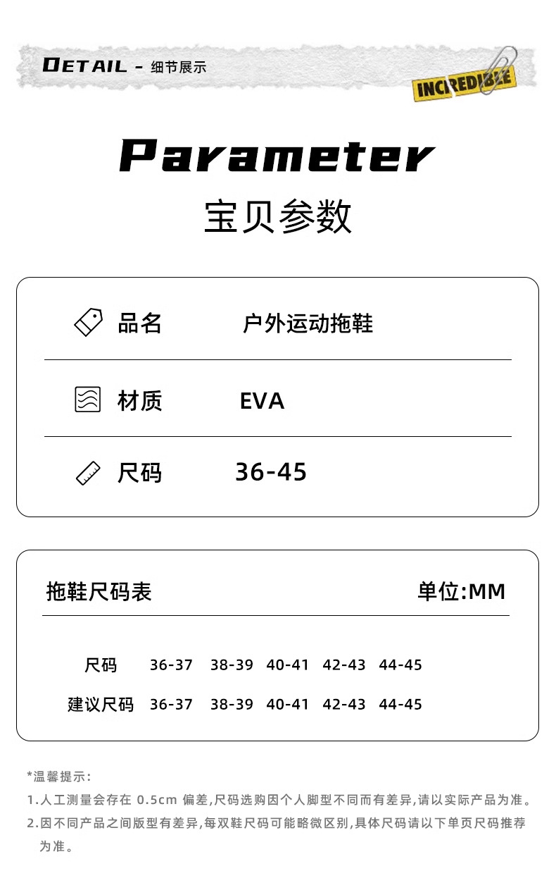 7:温馨提示:EVA材质拖鞋需避免高温暴晒,长时间高温会导致鞋子产生变形。