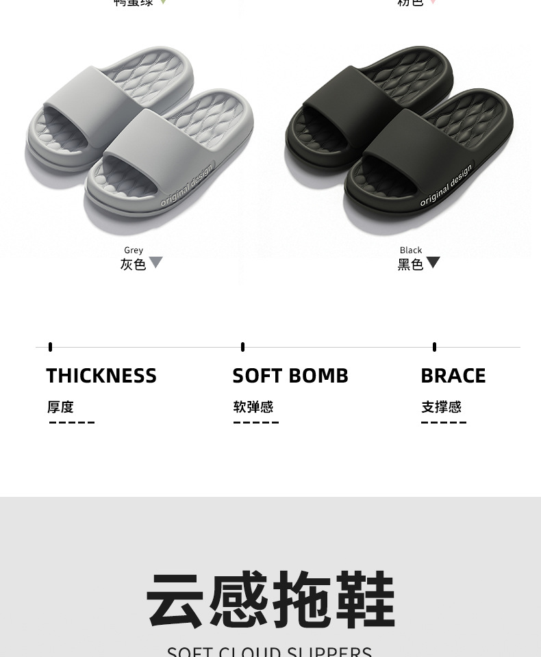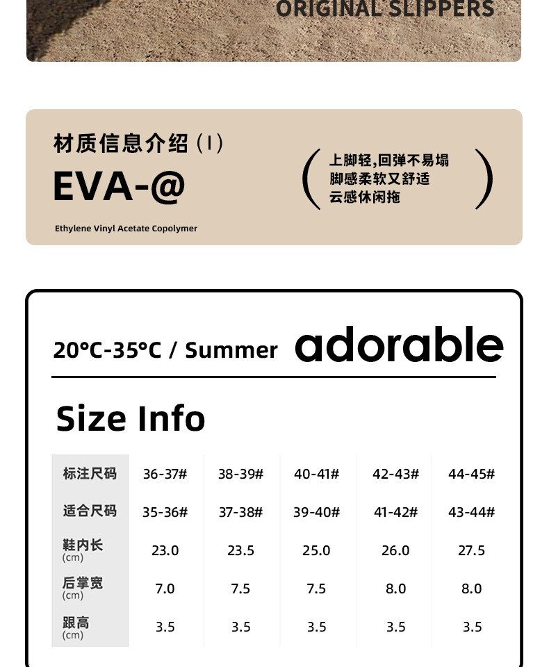 温馨提示:EVA材质拖鞋需避免高温暴晒,长时间高温会导致鞋子产生变形。