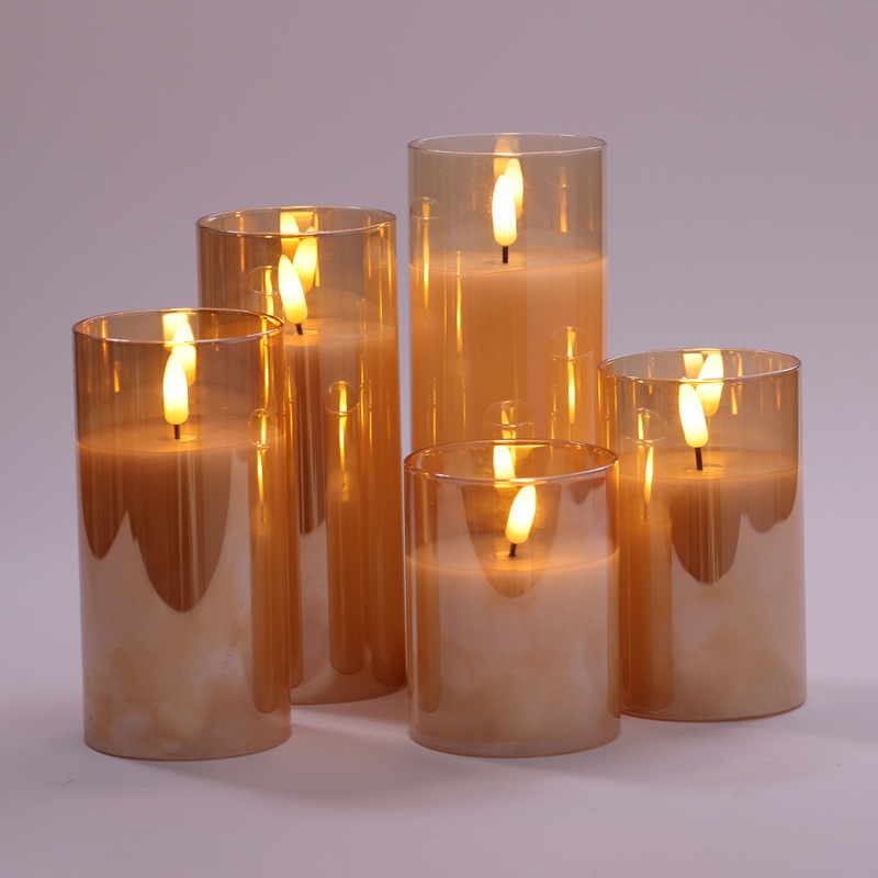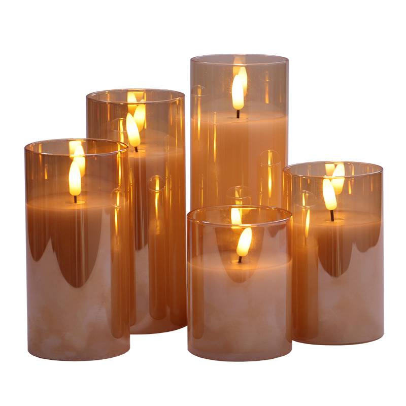 跨境三件套玻璃石蜡电子蜡烛灯仿真火焰子弹头遥控LED电子蜡烛
