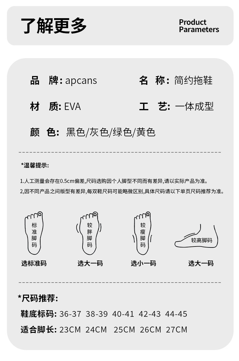 7:温馨提示:EVA材质拖鞋需避免高温暴晒,长时间高温会导致鞋子产生变形。