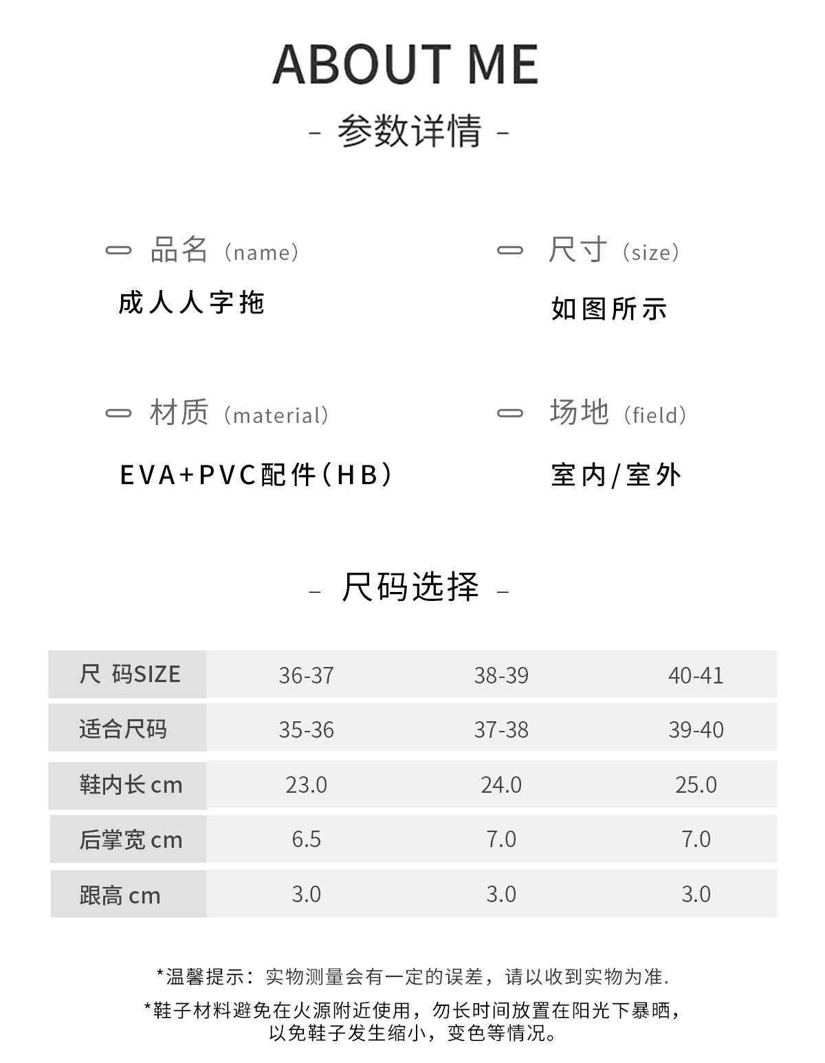 7:温馨提示:EVA材质拖鞋需避免高温暴晒,长时间高温会导致鞋子产生变形。