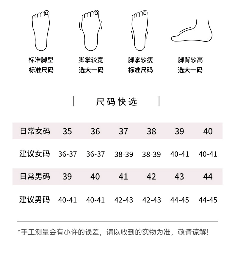 尺码问题:码数偏小一点(卡码 脚宽 脚胖建议可选大一码),拍前可以联系客服。
