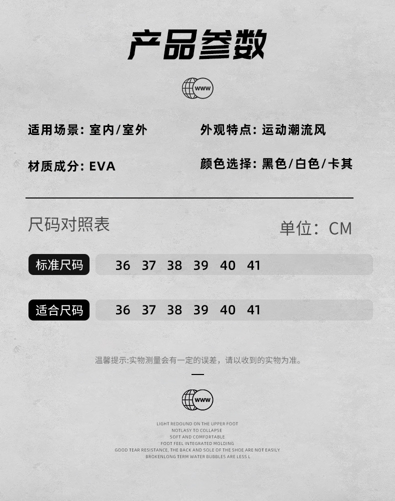 尺码问题:码数偏小一点(卡码 脚宽 脚胖建议可选大一码),拍前可以联系客服。