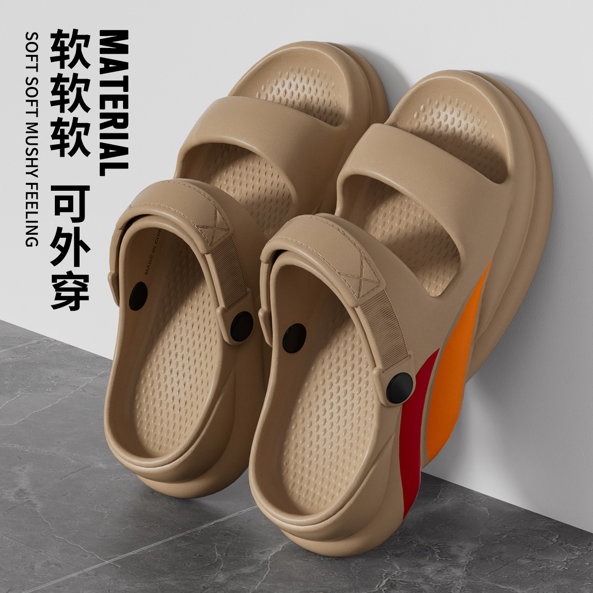 温馨提示:EVA材质拖鞋需避免高温暴晒,长时间高温会导致鞋子产生变形。