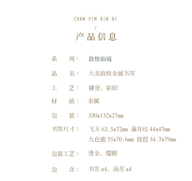 材质: 金属 品牌: 东腔 款式: 流苏款 风格: 故宫风 货号: 04 是否专利货源: 否 工艺: 金属+电镀+彩印 包装: 礼盒款 重量: 0.02 kg/套