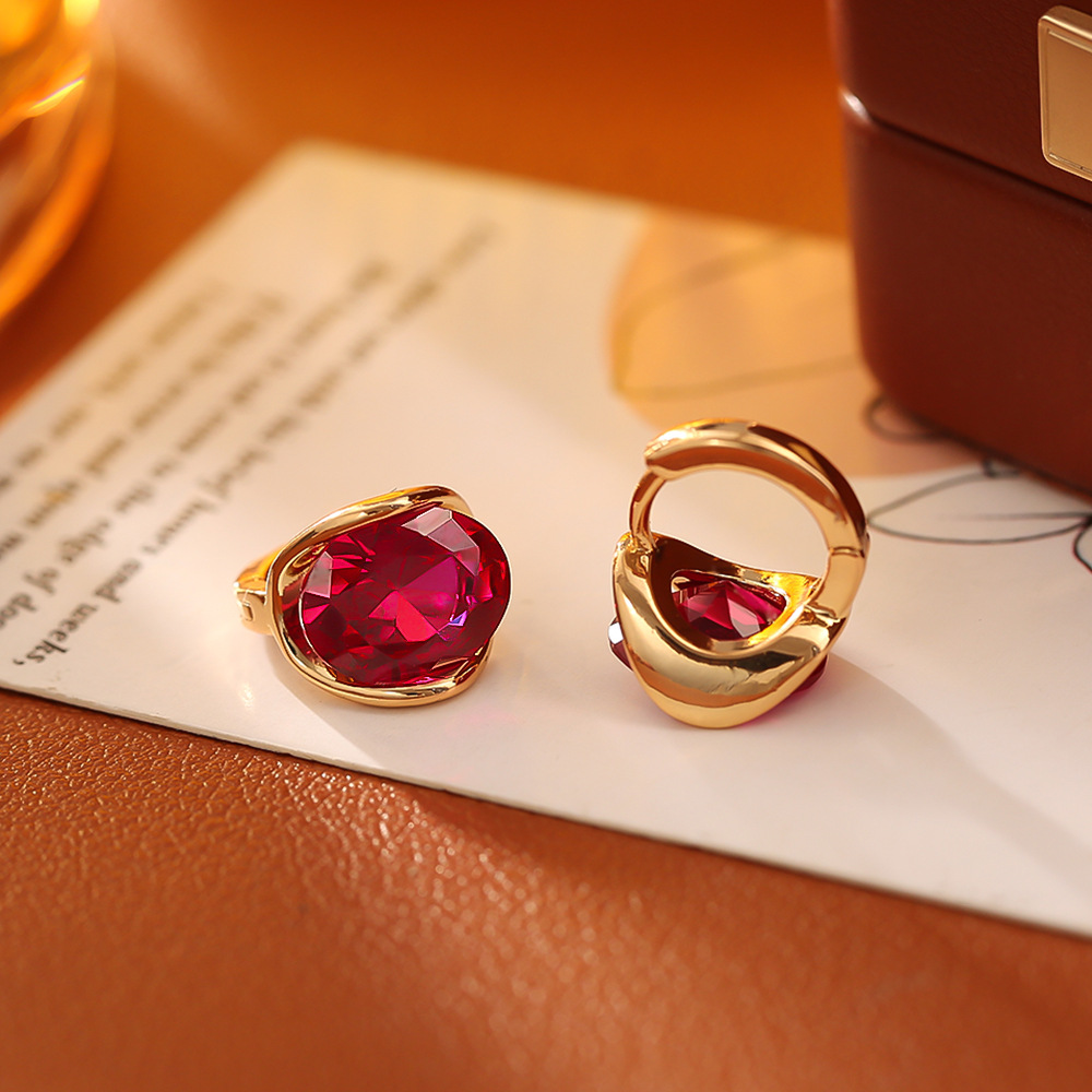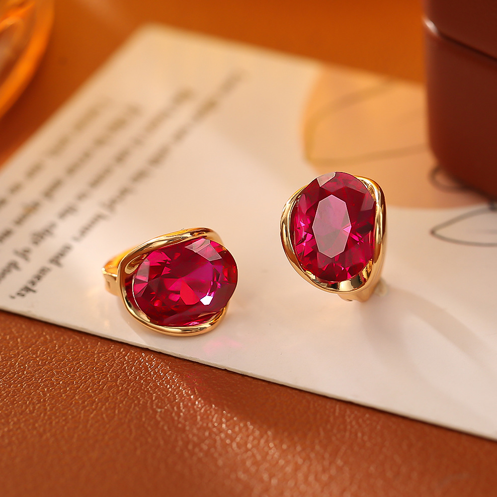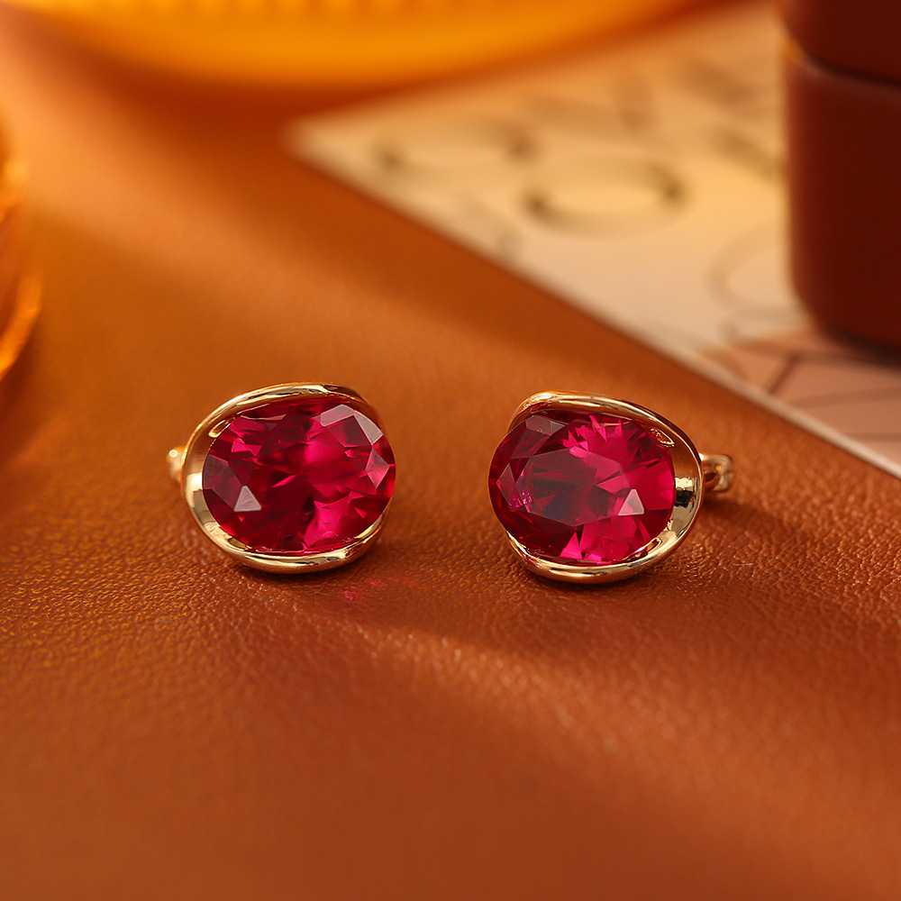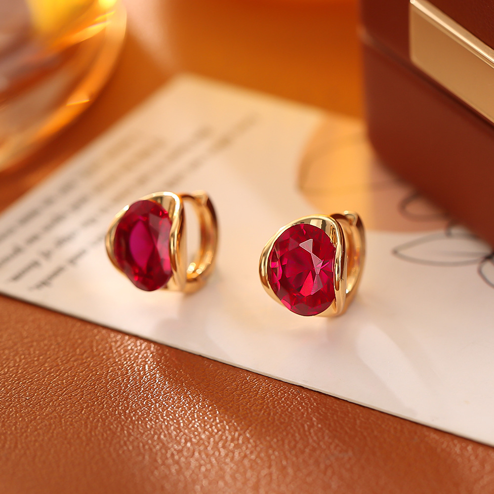 源头工厂红色锆石耳环高级感时尚简约气质耳饰铜镀真金网红风耳扣