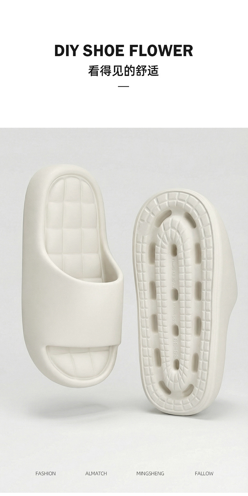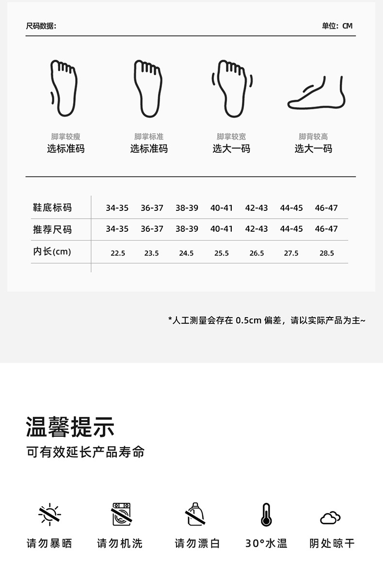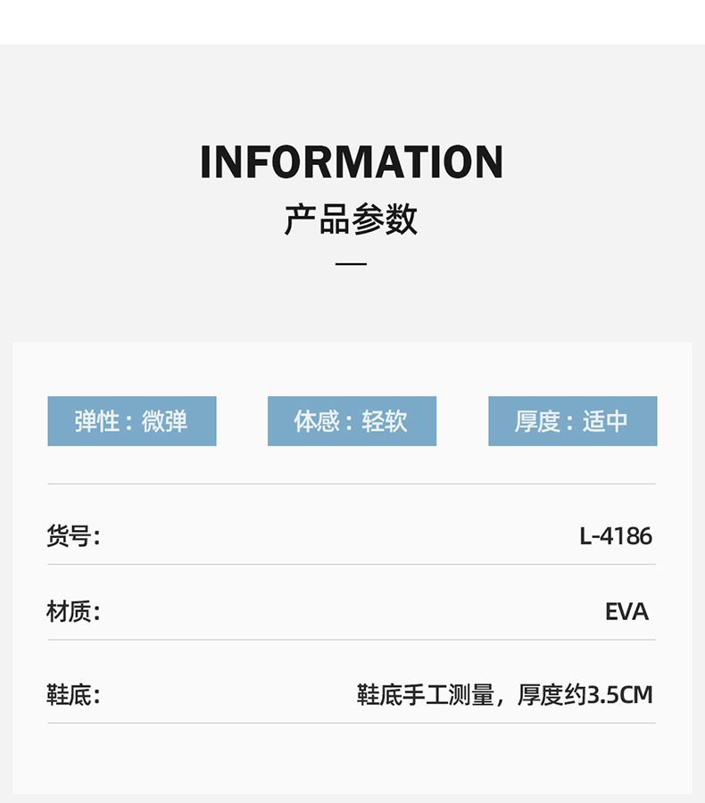 温馨提示:EVA材质拖鞋需避免高温暴晒,长时间高温会导致鞋子产生变形。