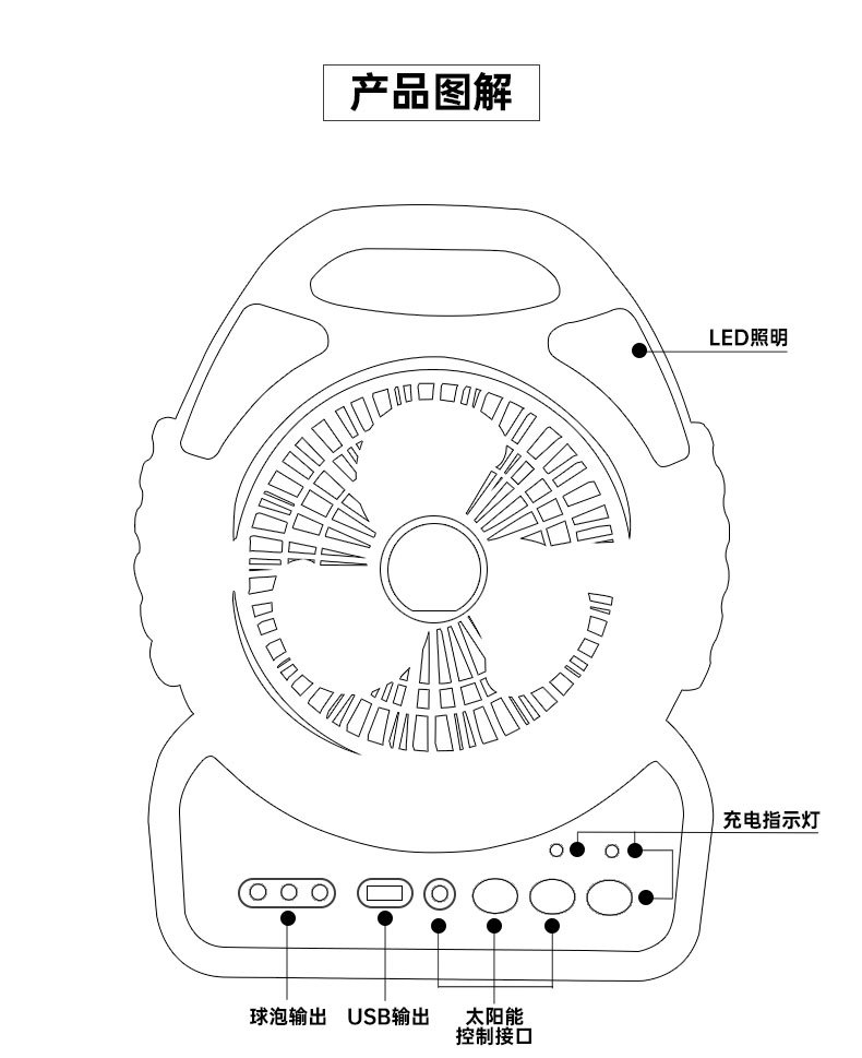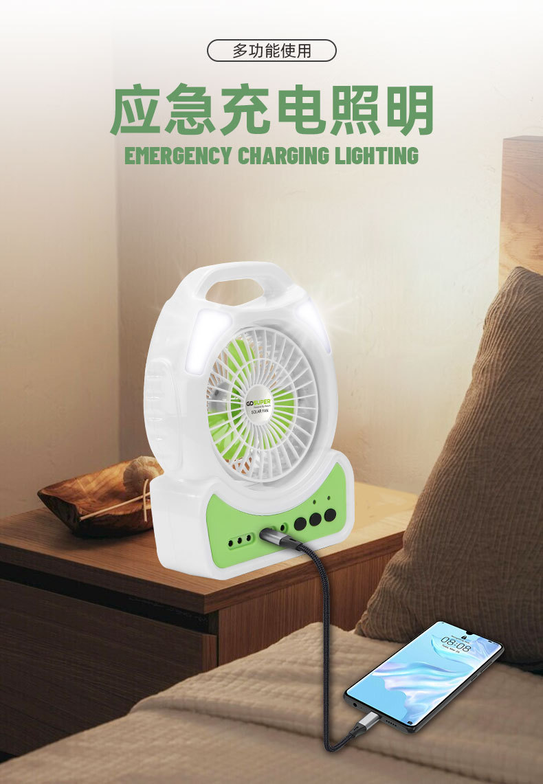 跨境新款户外家用多功能太阳能手提灯风扇应急照明灯便携式长续航 English | 投诉