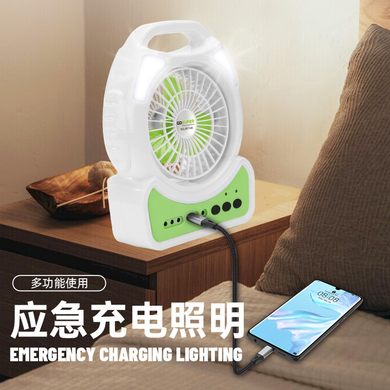 跨境新款户外家用多功能太阳能手提灯风扇应急照明灯便携式长续航