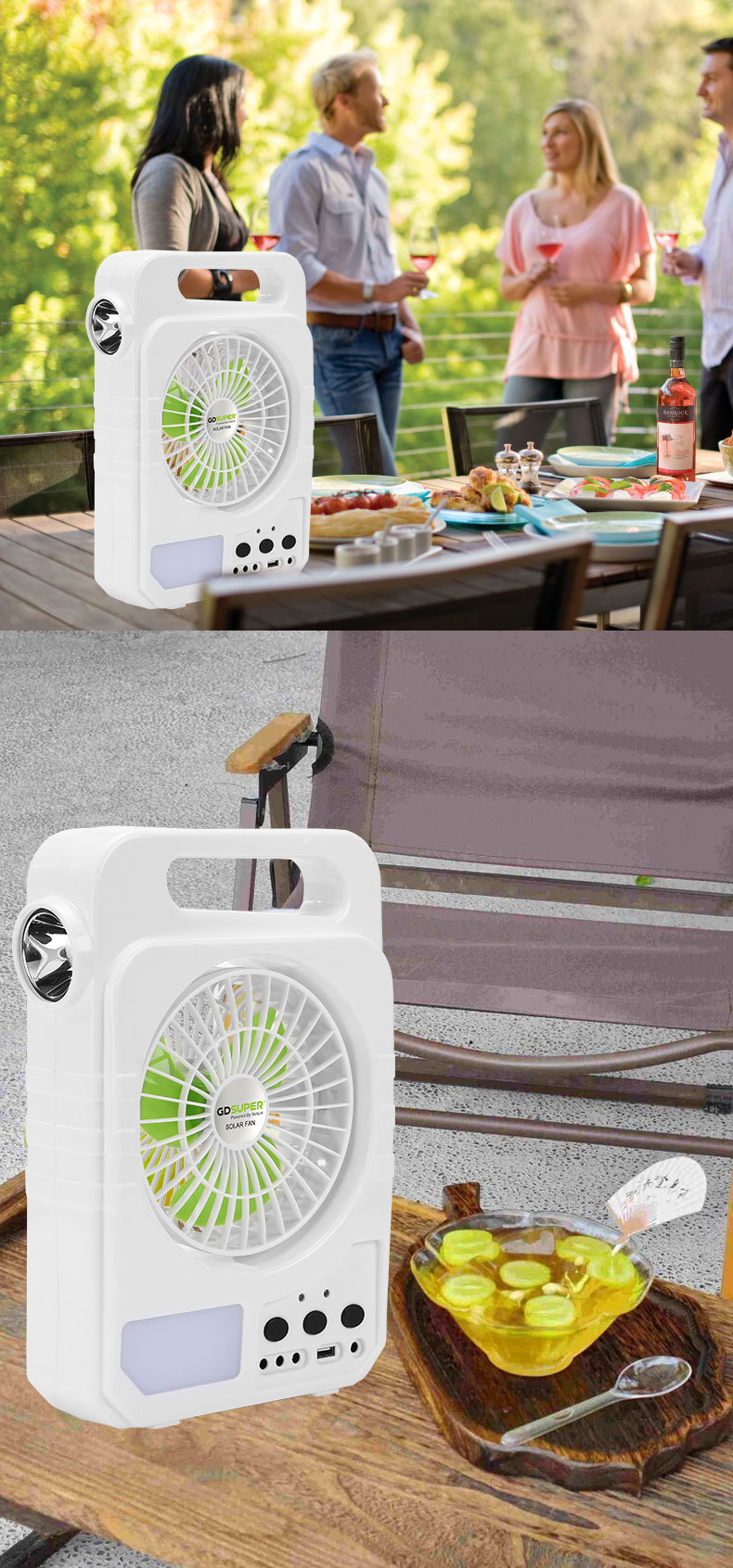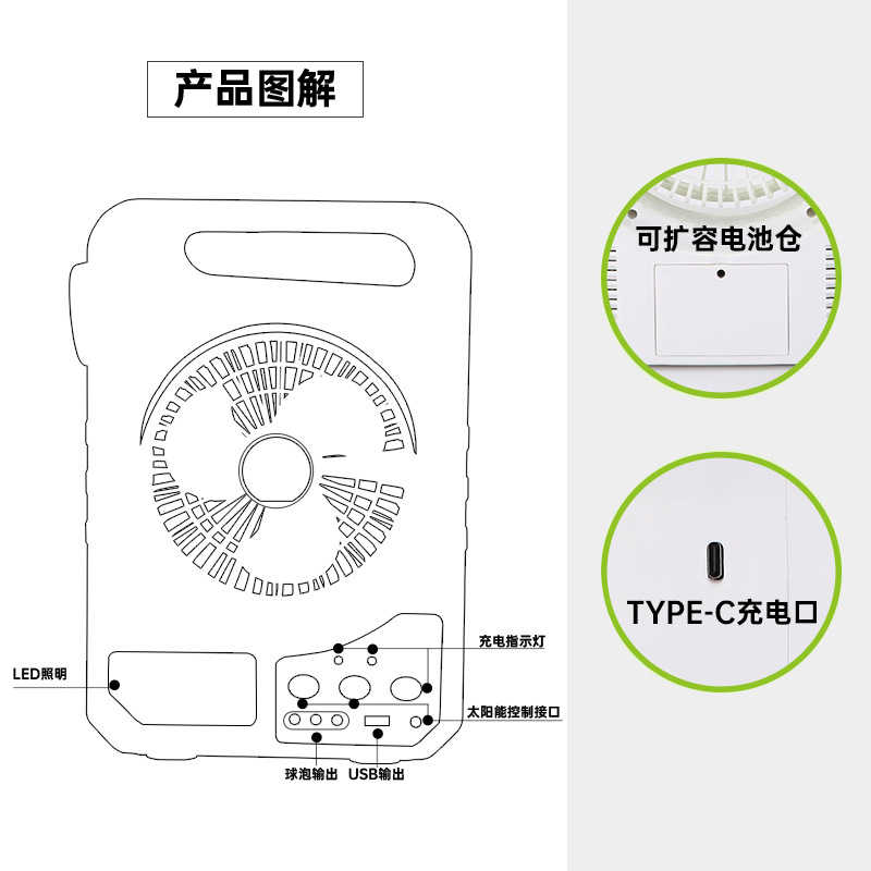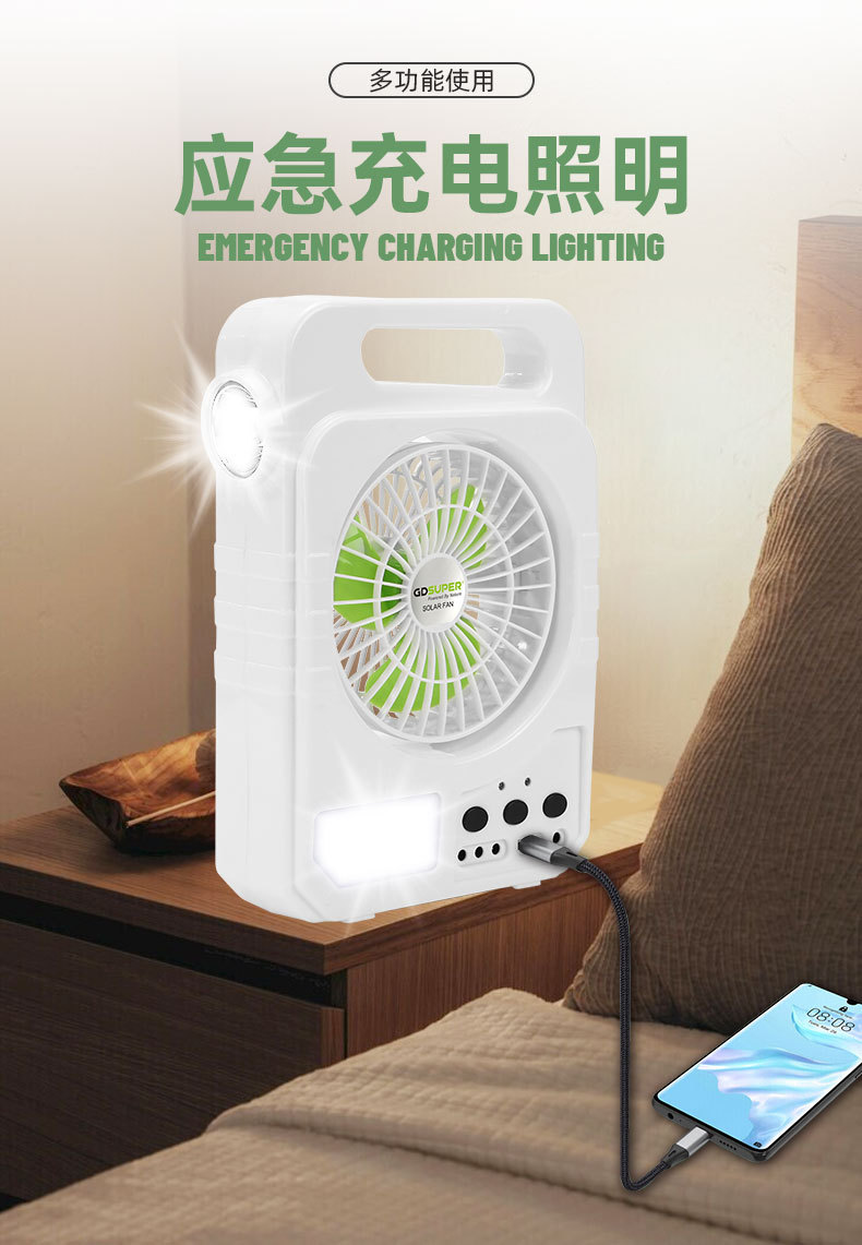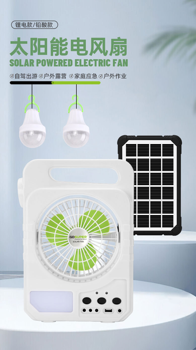户外露营风扇太阳能照明风扇灯便携式充电锂电风扇便携帐篷电风扇 English | 投诉