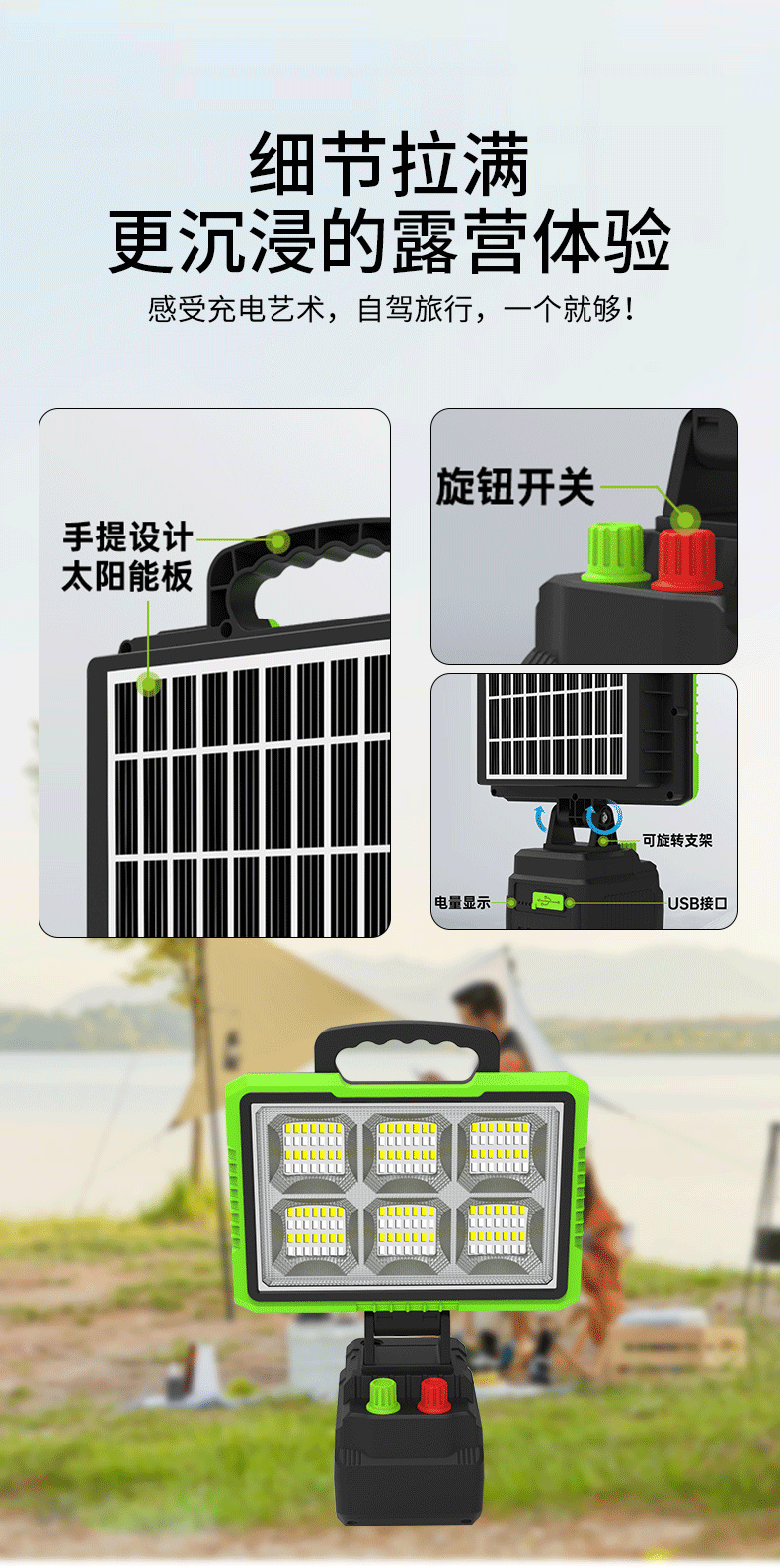 跨境新款太阳能手提投光灯户外家用防水照明灯多功能泛光灯庭院灯 English | 投诉
