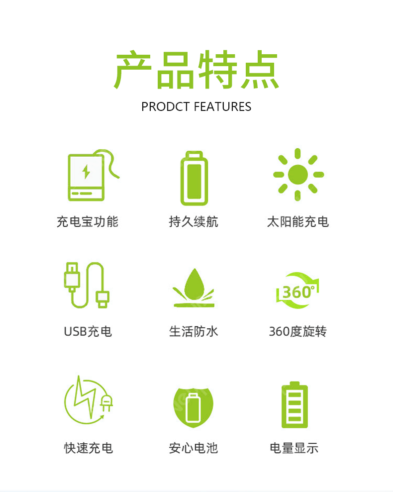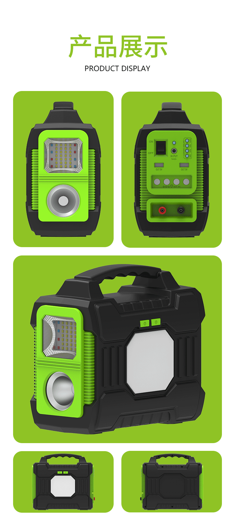 • 主要生产销售家用太阳能照明系统 、太阳能投光灯 、太阳能路灯 、太阳能光伏板 、便携式太阳能储能系统 、太阳能家庭储能等产品