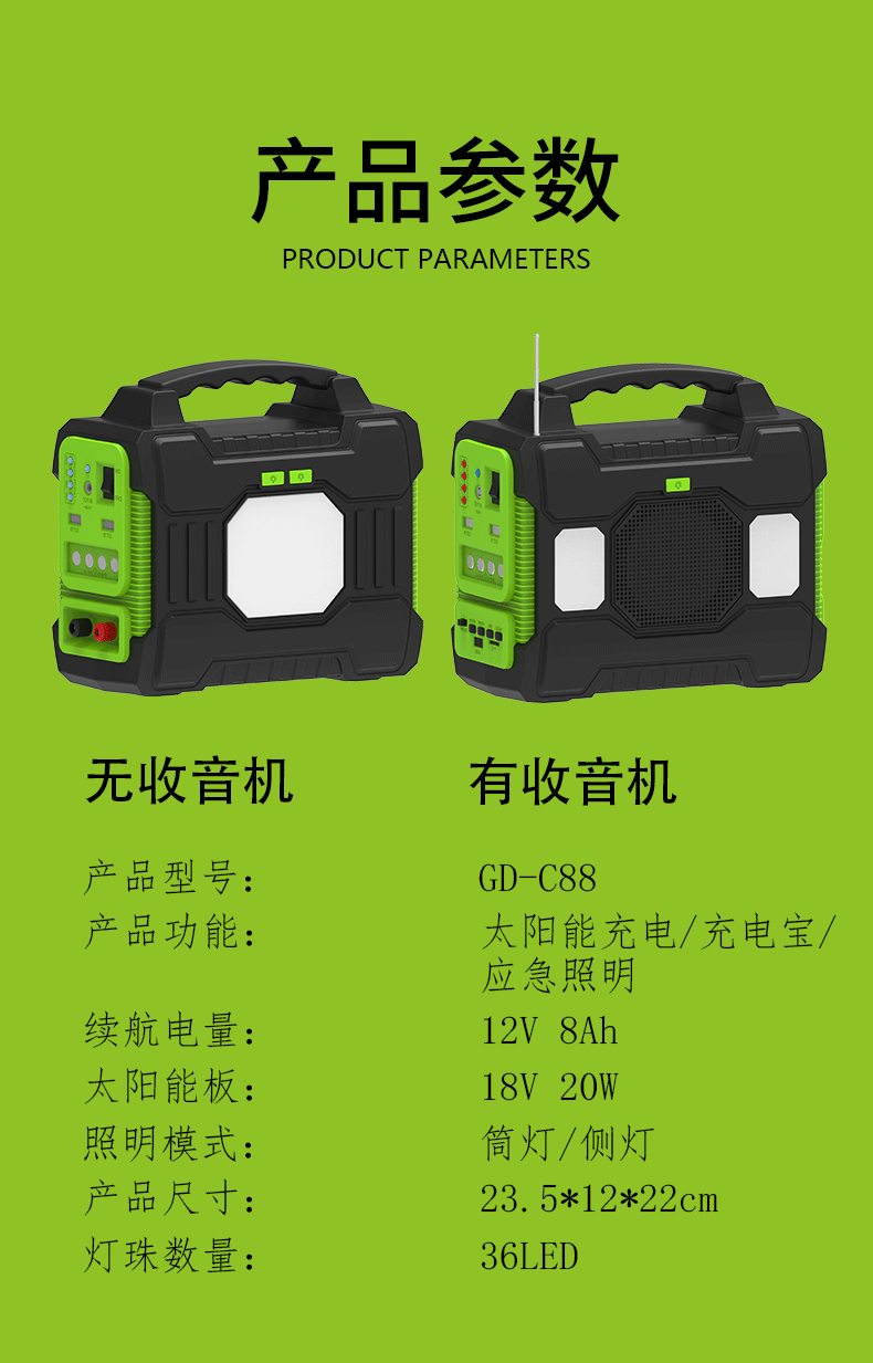 跨境新款太阳能充电手提灯多功能蓝牙音响收音机户外移动储能系统 English | 投诉