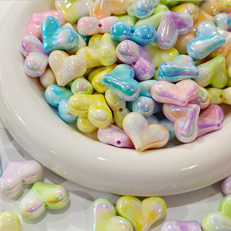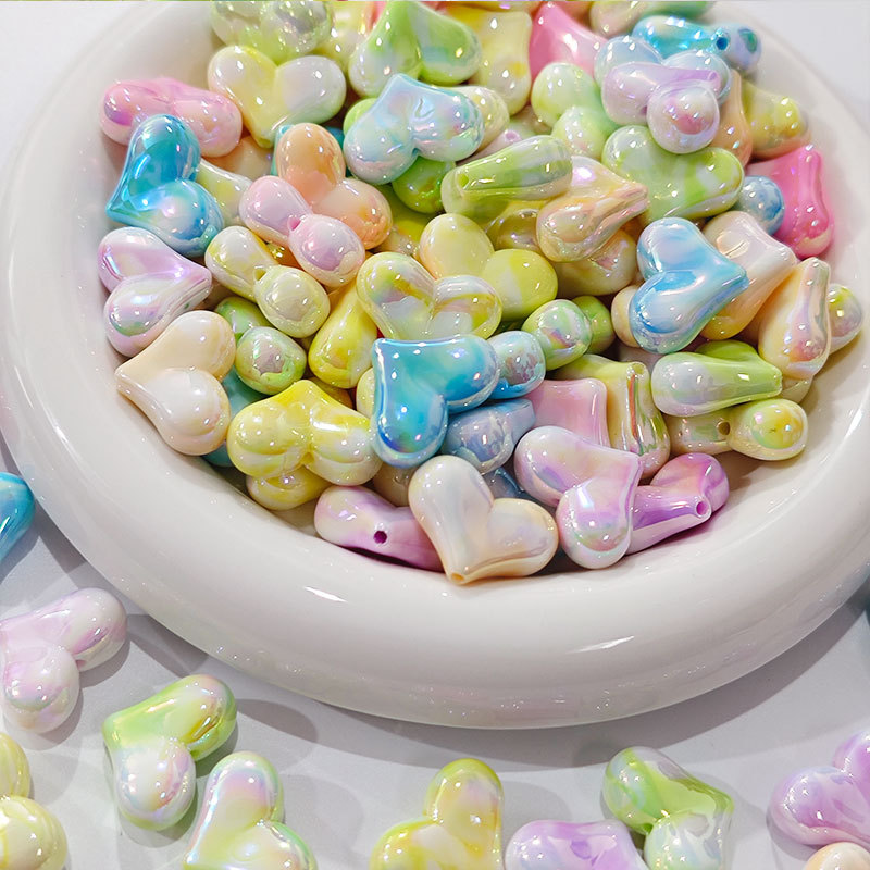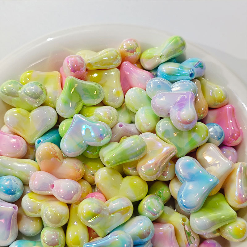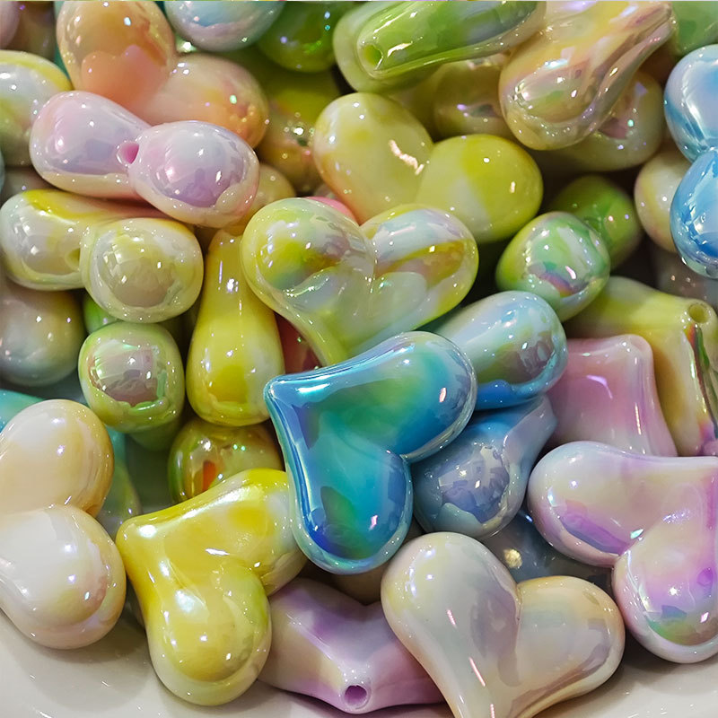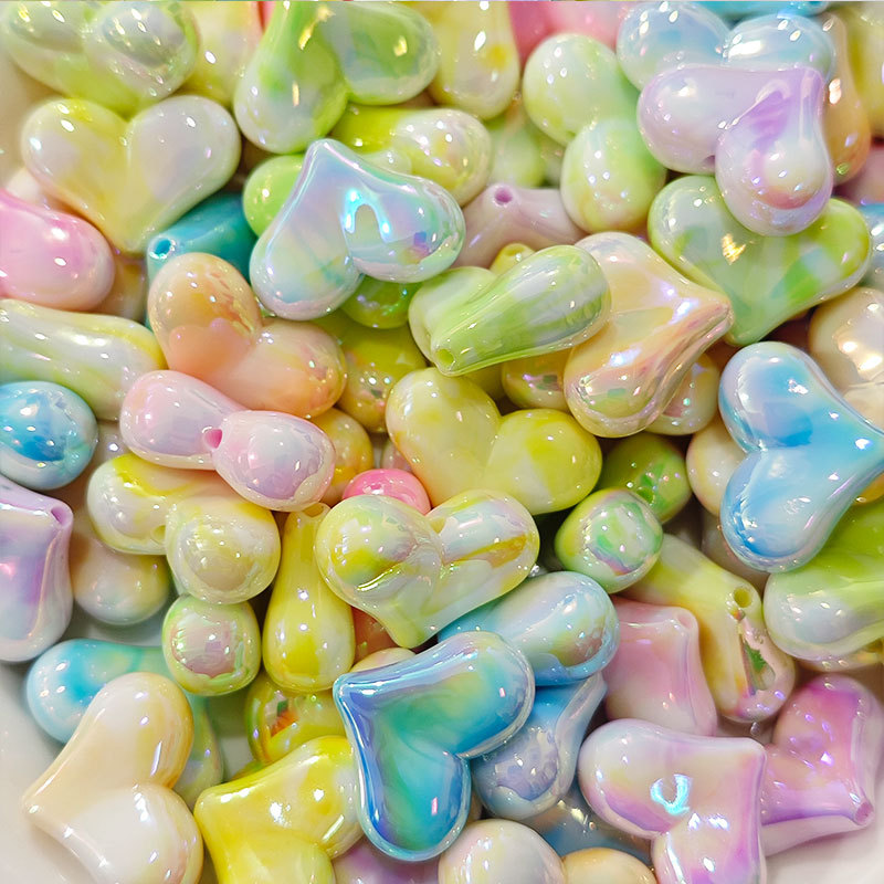 高货亚克力镀UV双色屁桃爱心串珠diy饰品手工串笔手机链配件批发