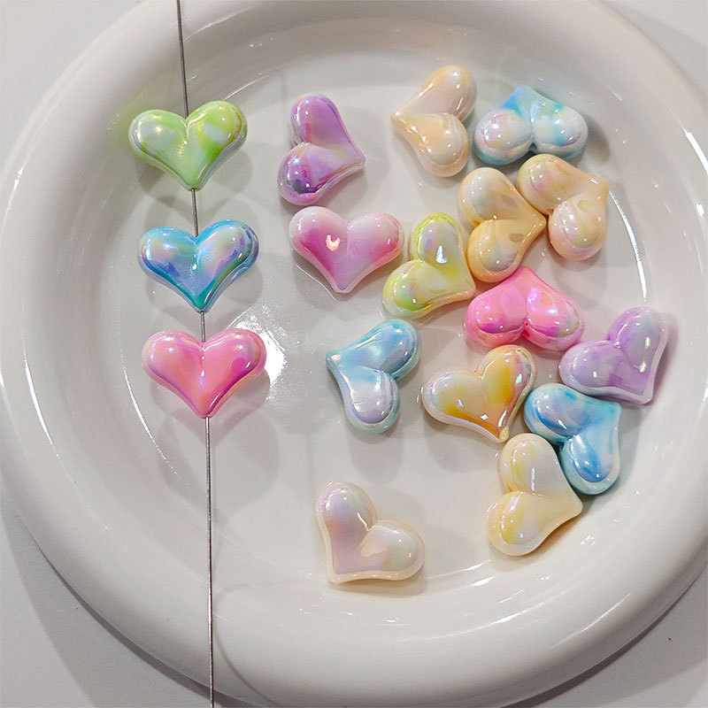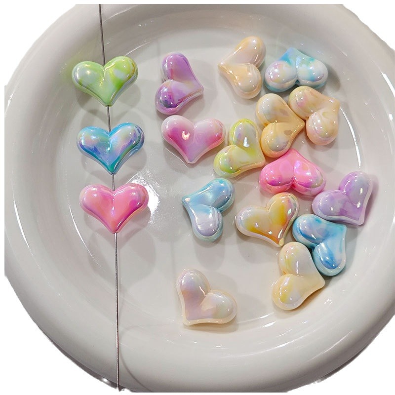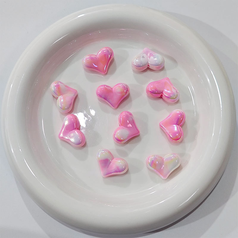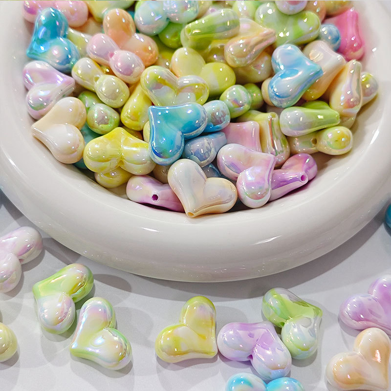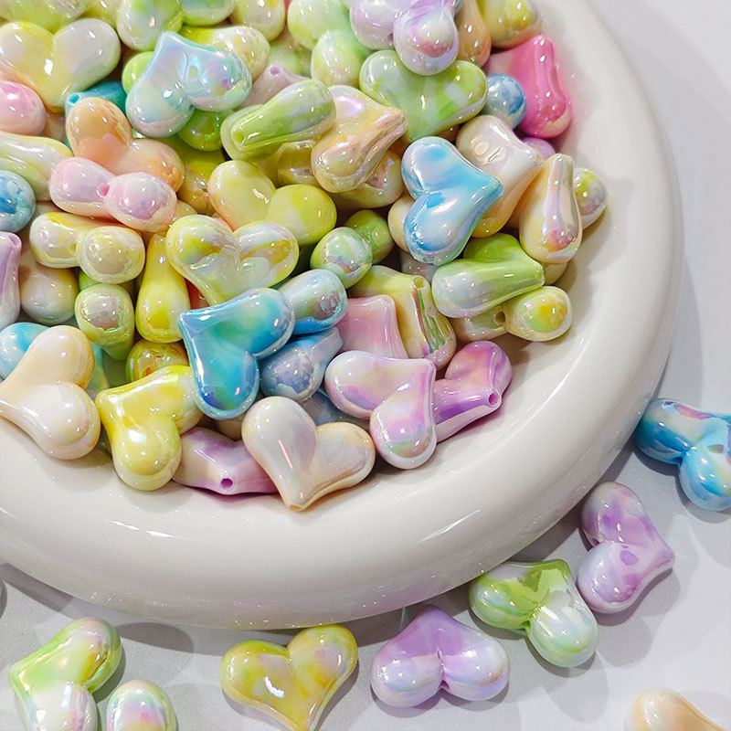 高货亚克力镀UV双色屁桃爱心串珠diy饰品手工串笔手机链配件批发