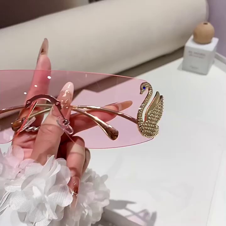2026新款时尚潮流无框切边连体太阳镜Y2K街拍显瘦防紫外线墨镜 English | 投诉
