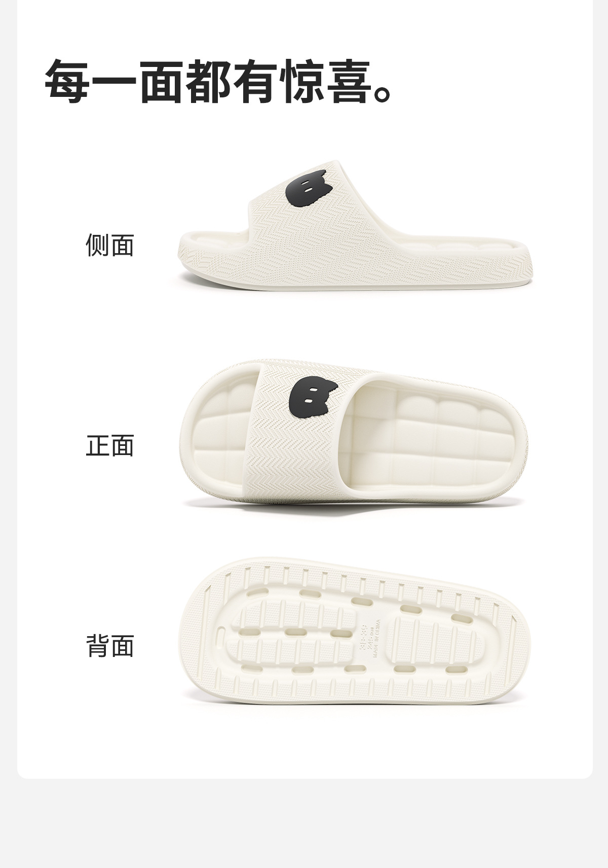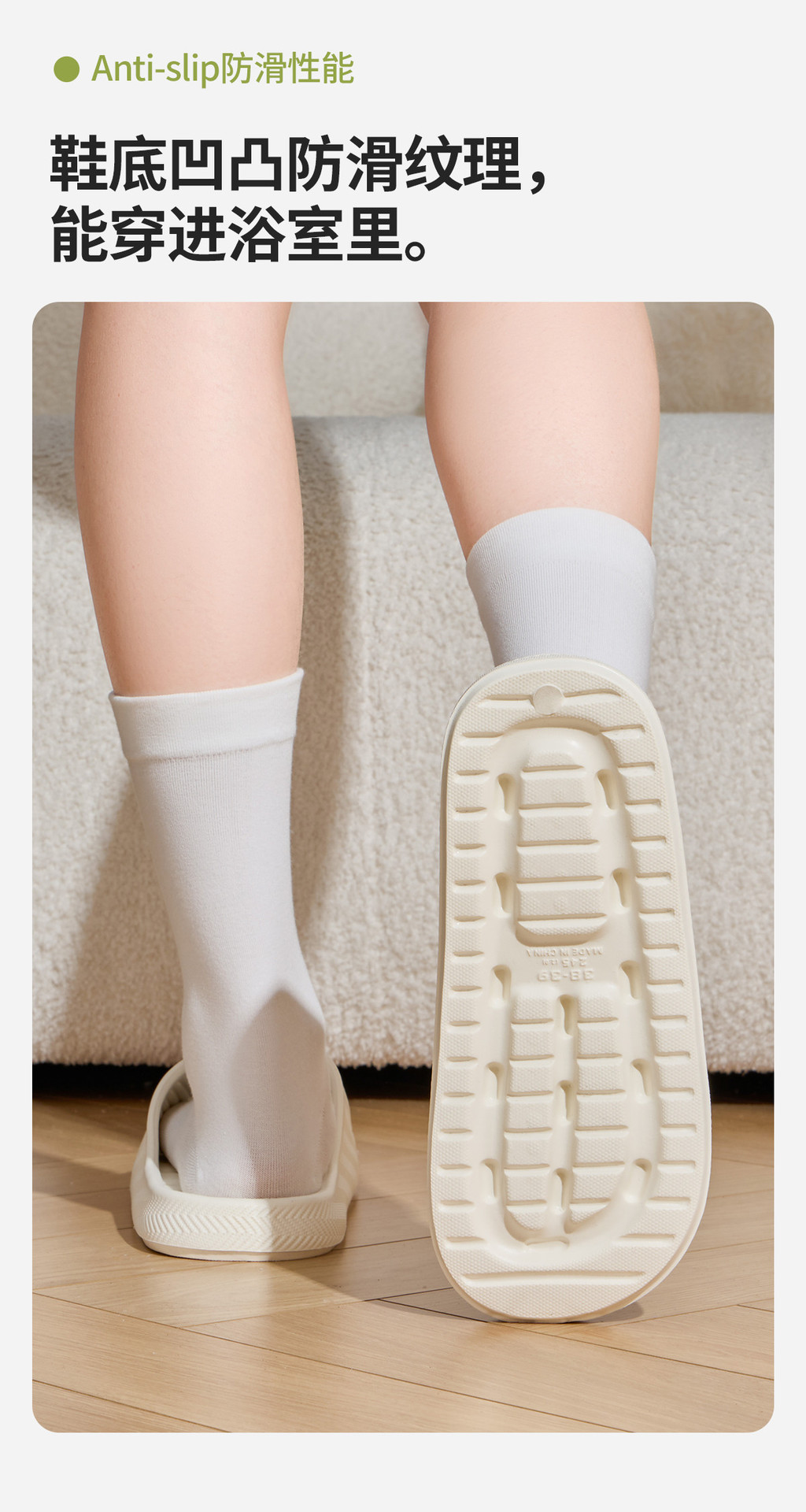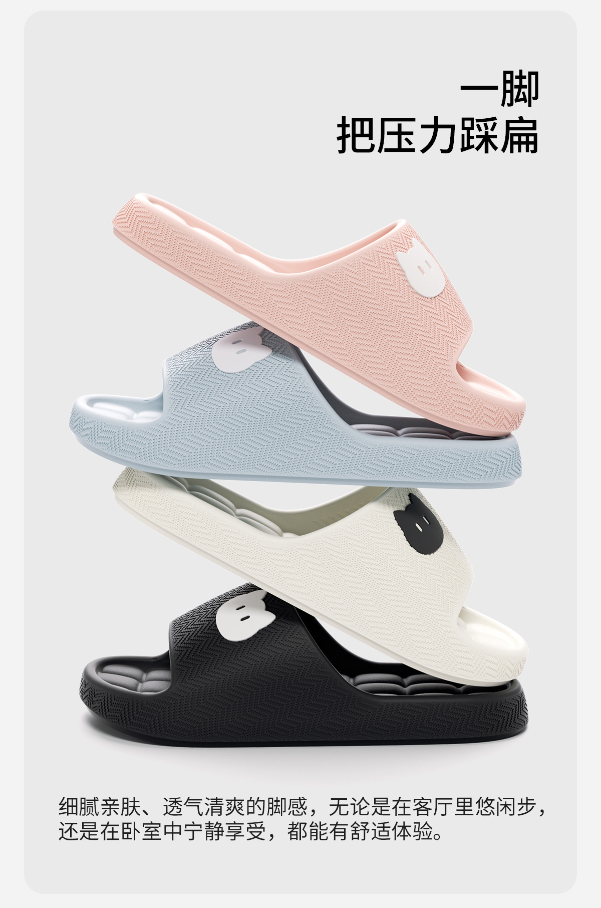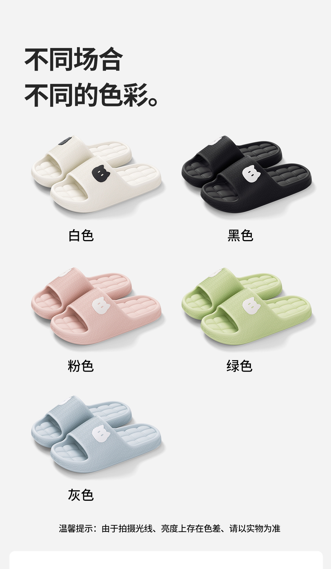 温馨提示:EVA材质拖鞋需避免高温暴晒,长时间高温会导致鞋子产生变形。