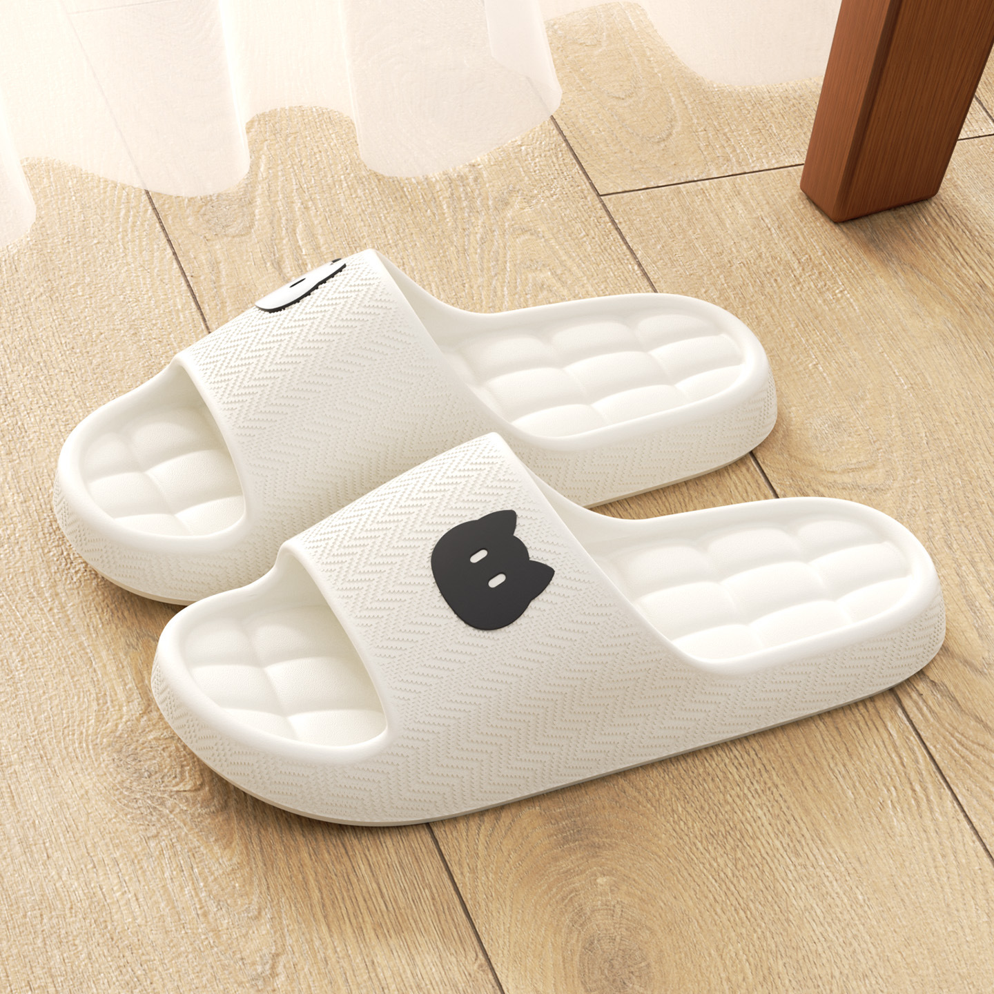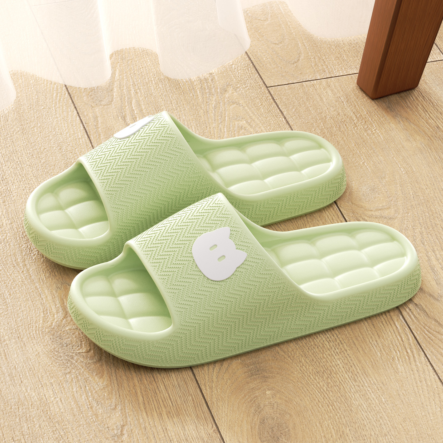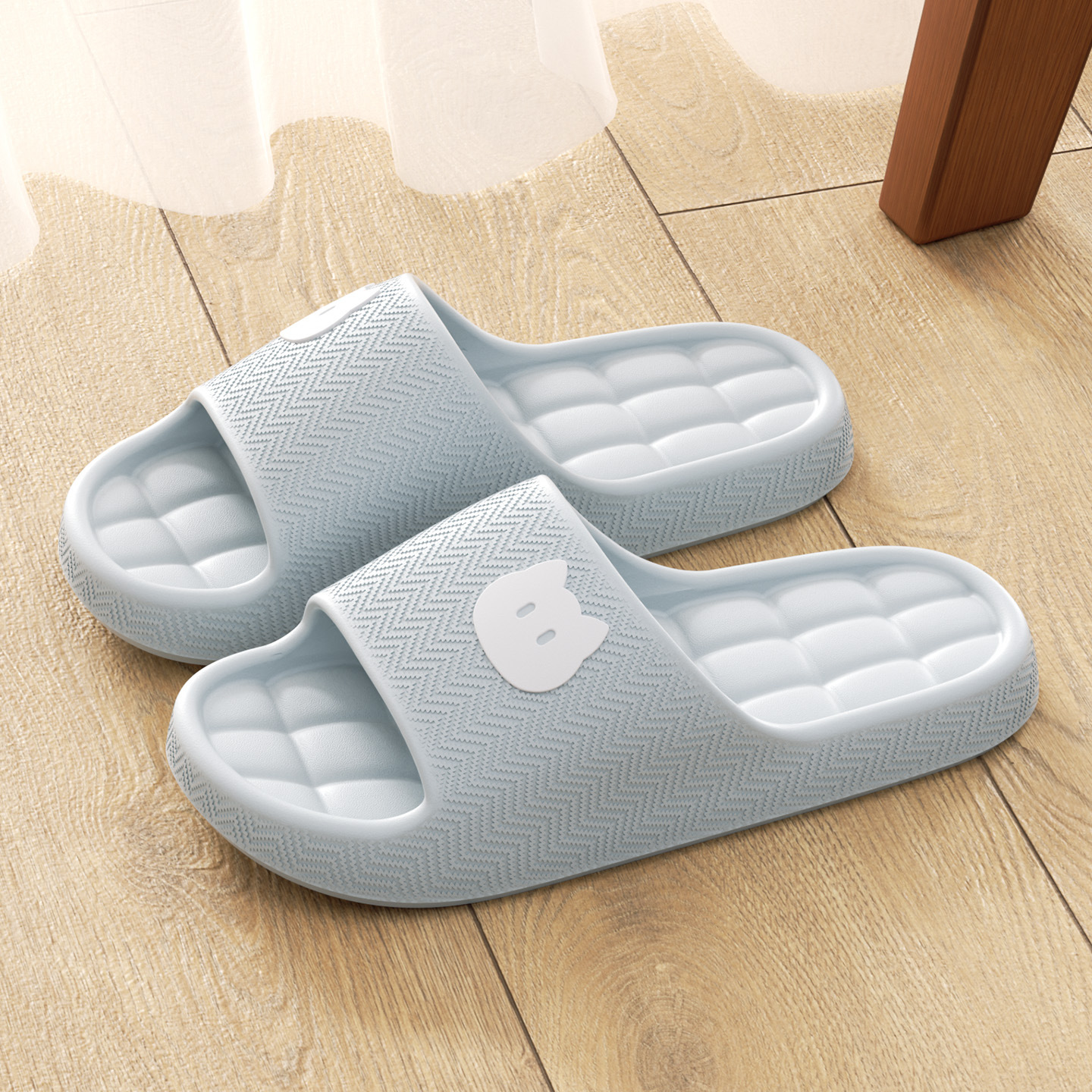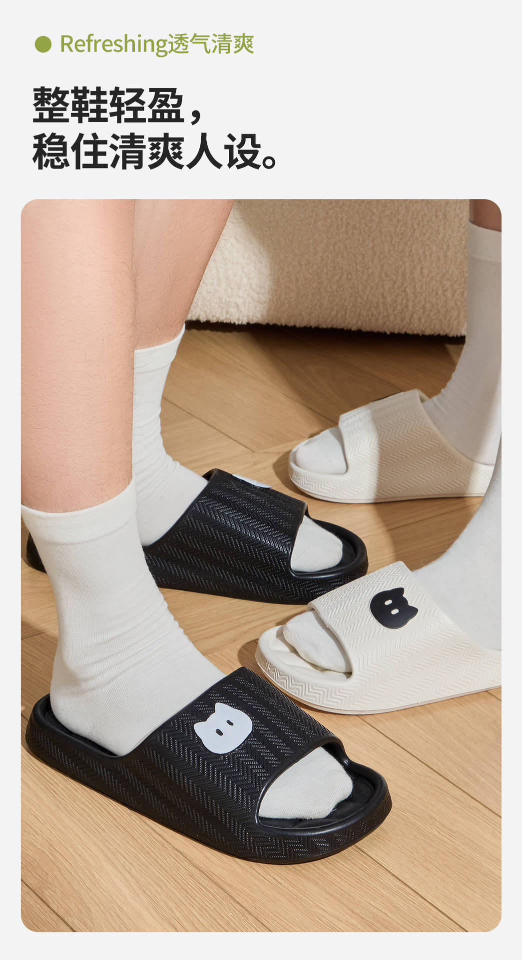 温馨提示:EVA材质拖鞋需避免高温暴晒,长时间高温会导致鞋子产生变形。