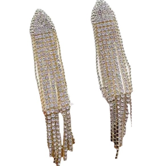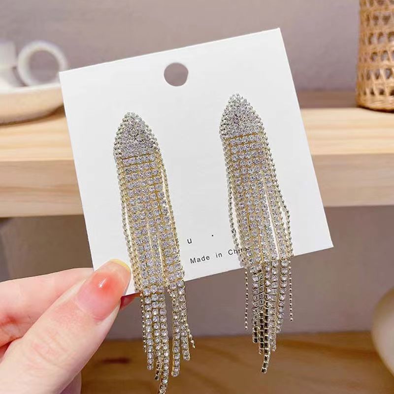 2023新款长款满钻三角显脸瘦气质冷淡风夸张流苏耳坠显瘦耳饰耳环 English | 投诉