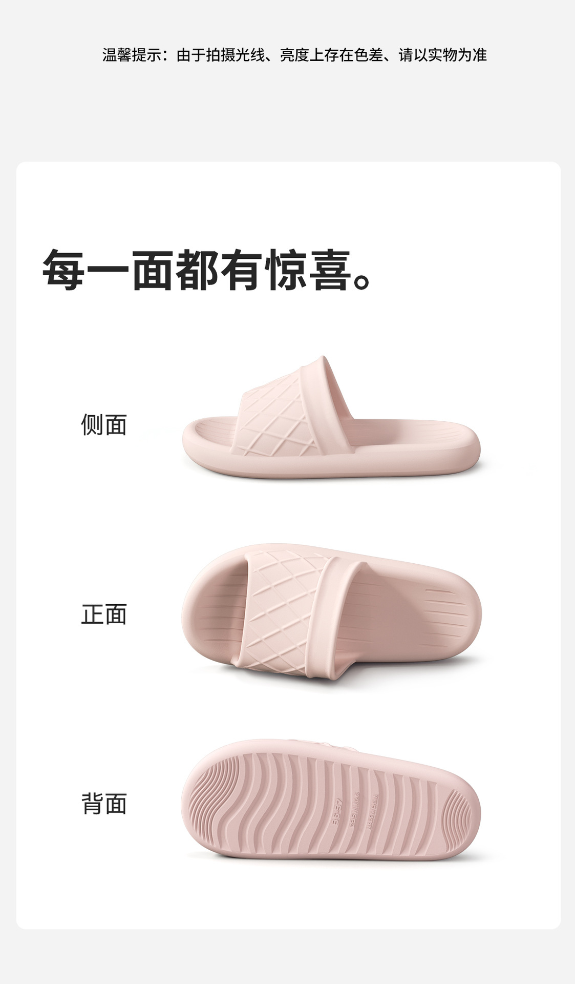 色差问题:图片为实物拍摄,因为相机显示器 灯光不同,极少数会有轻微色差。
