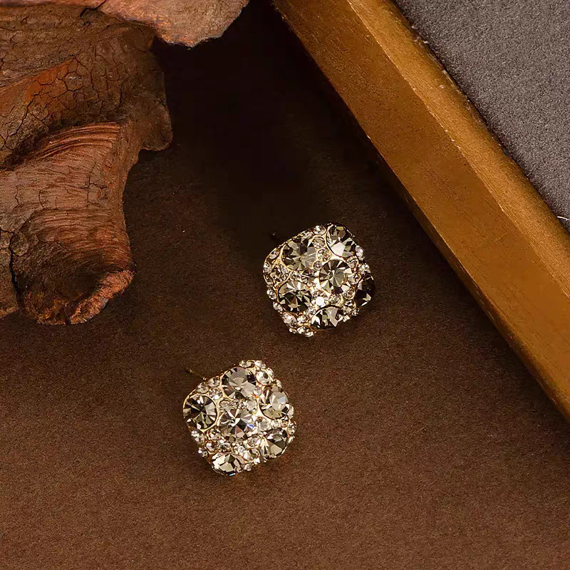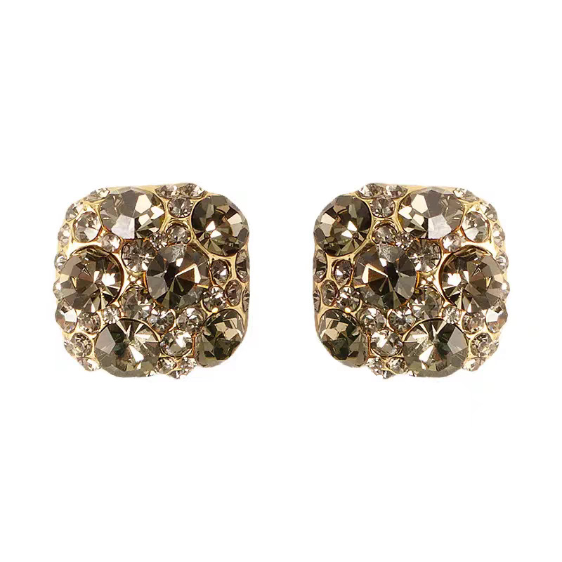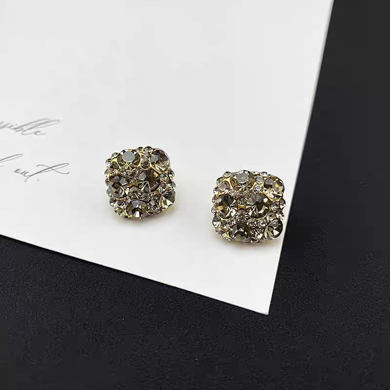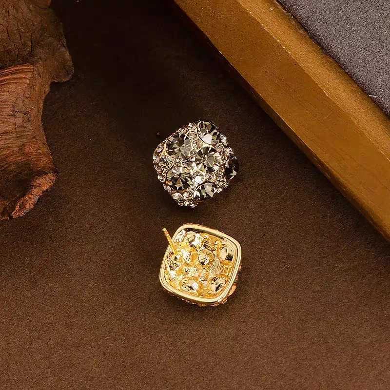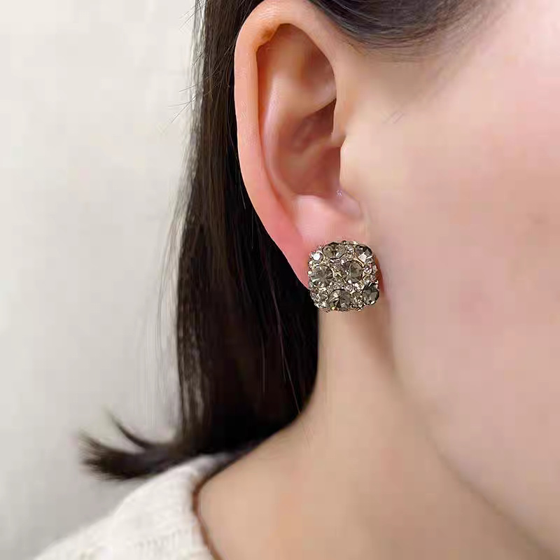 韩系超闪满锆灰钻方块银针耳钉女小众高级感复古名媛气质精致耳饰 English | 投诉
