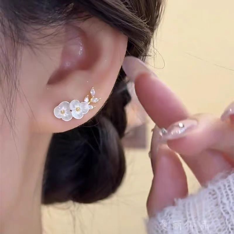 s925银针耳饰超仙贝壳山茶花耳钉轻奢高级感时尚气质精致百搭耳环 English | 投诉