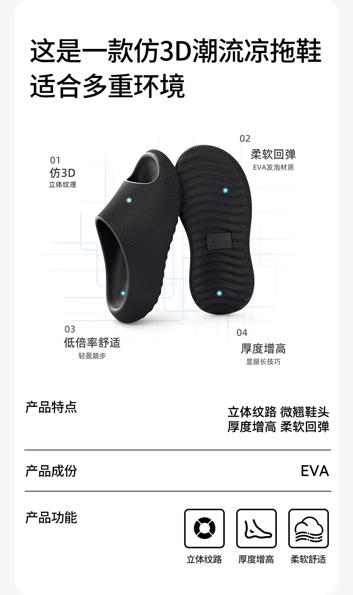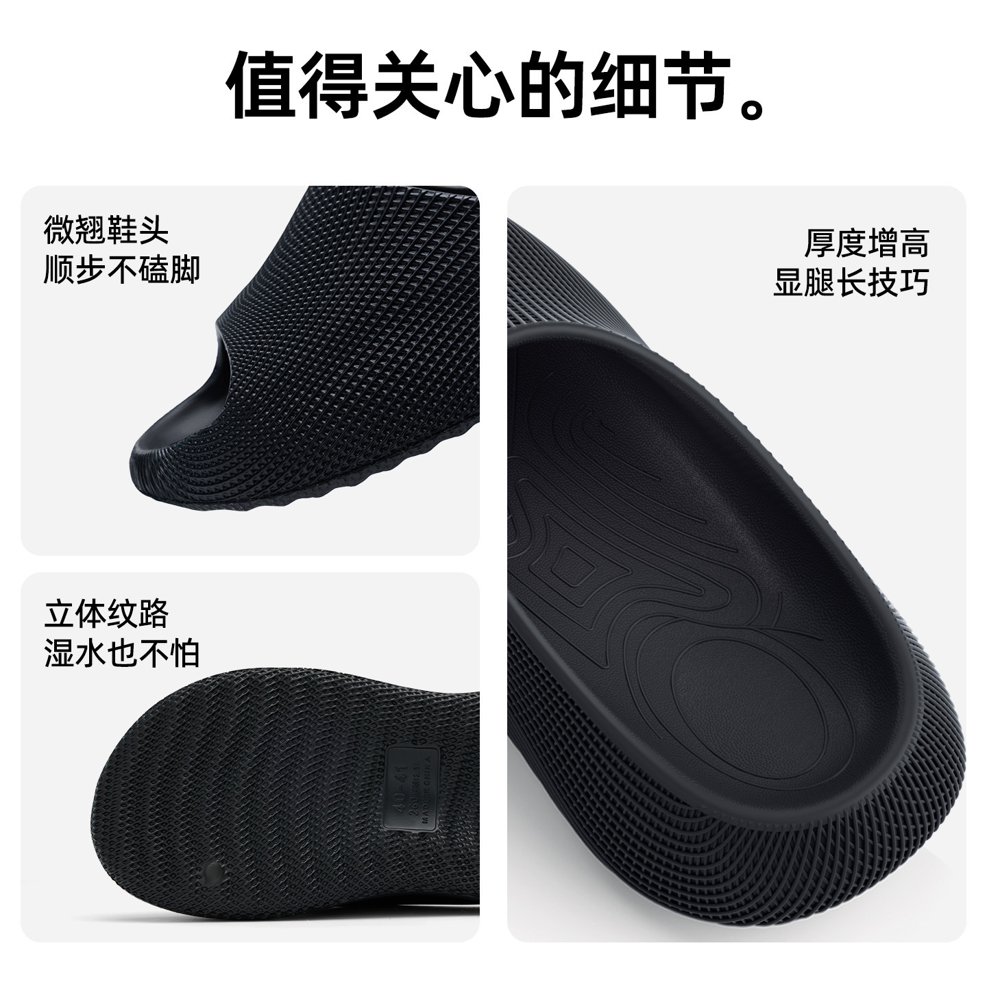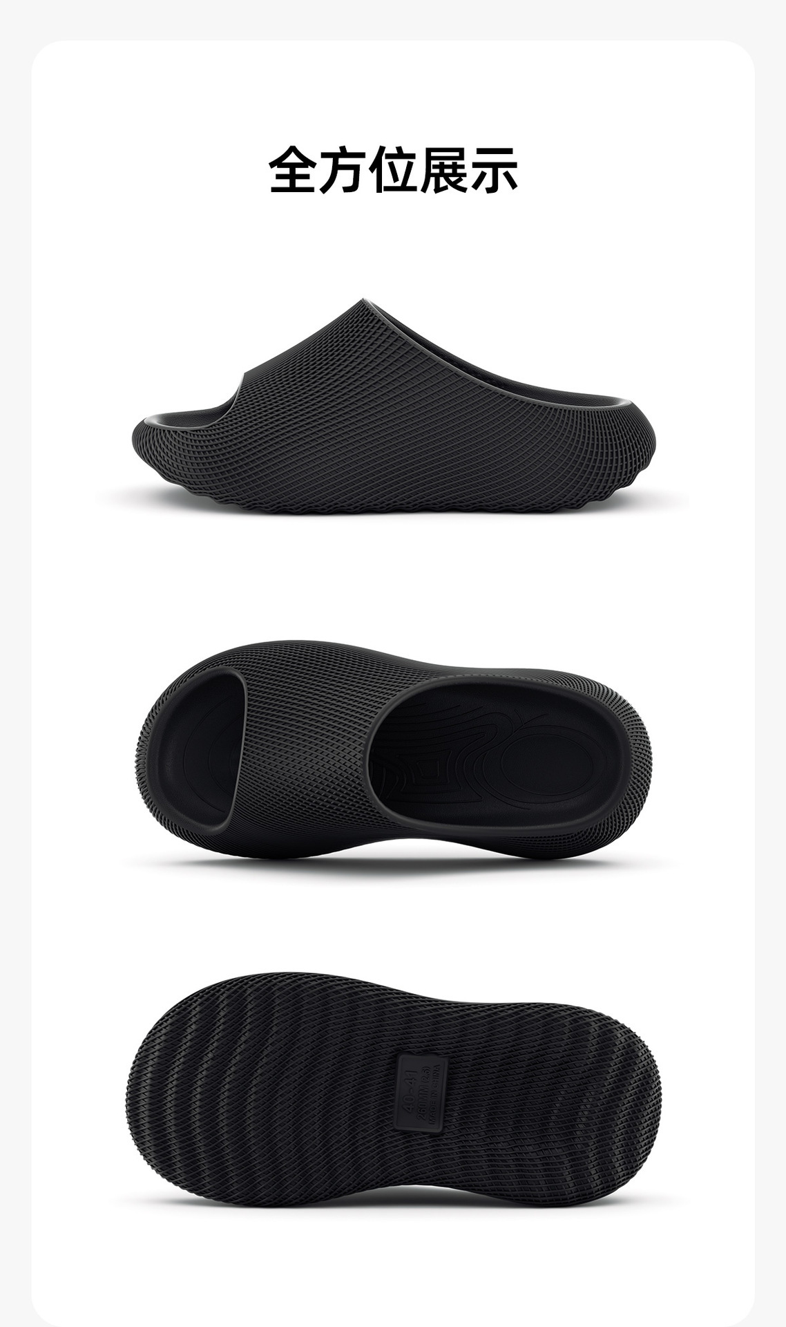 温馨提示:EVA材质拖鞋需避免高温暴晒,长时间高温会导致鞋子产生变形。