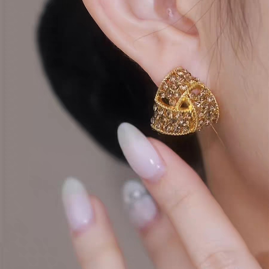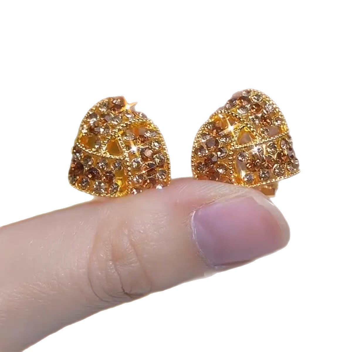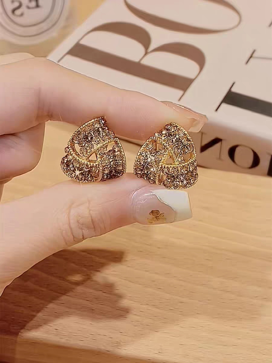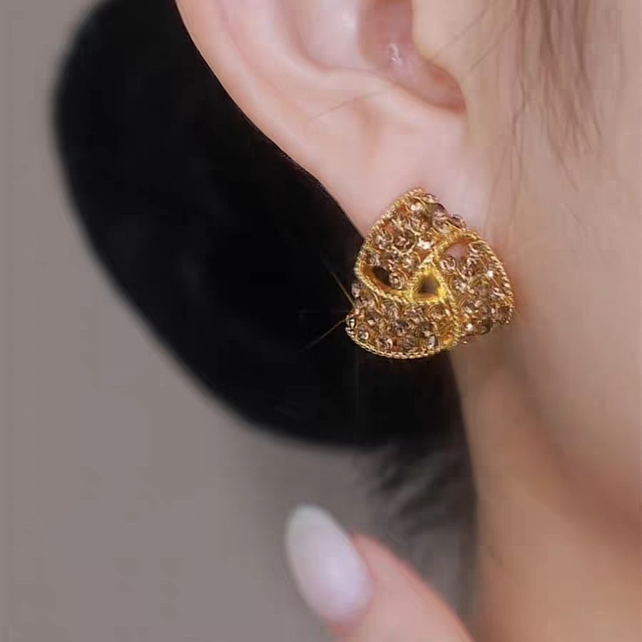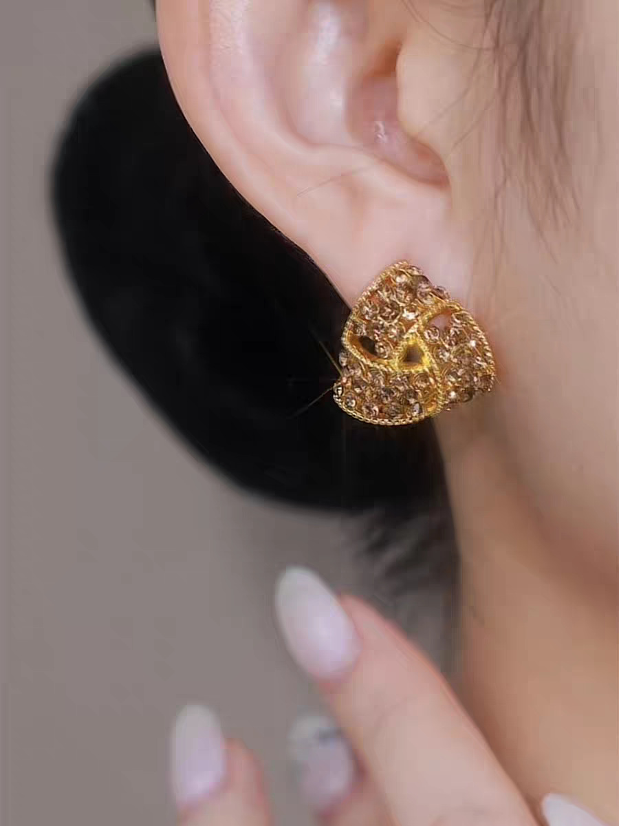 2025新款焦糖色三角形满钻耳夹耳环女秋冬款设计感洋气精致耳饰品 English | 投诉