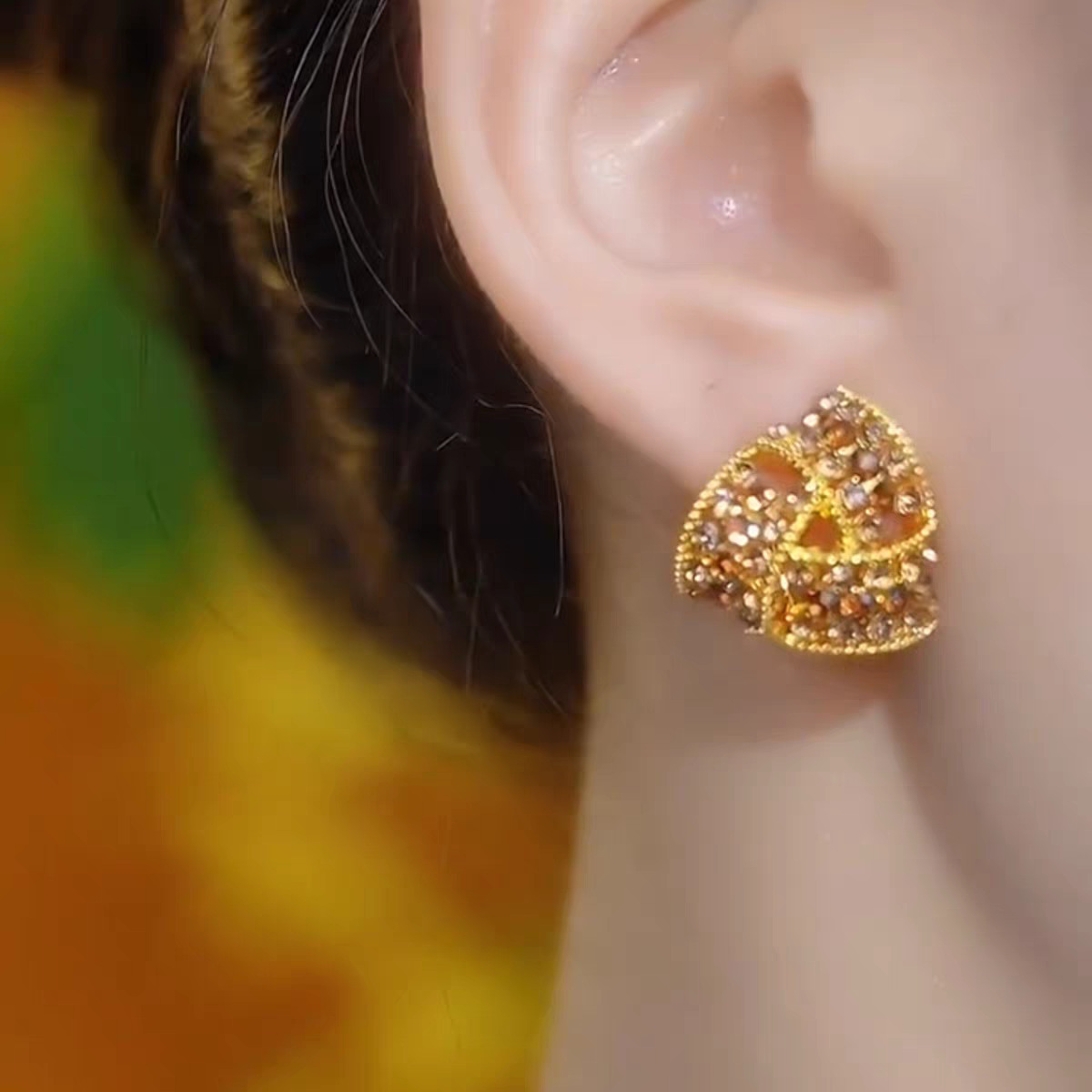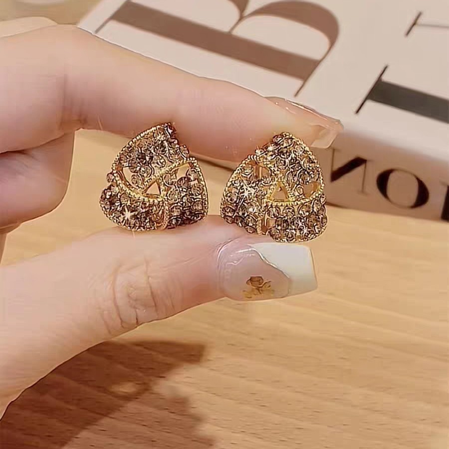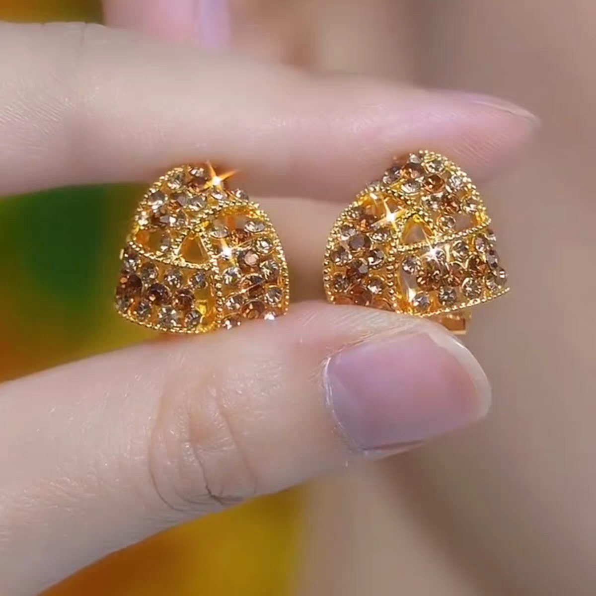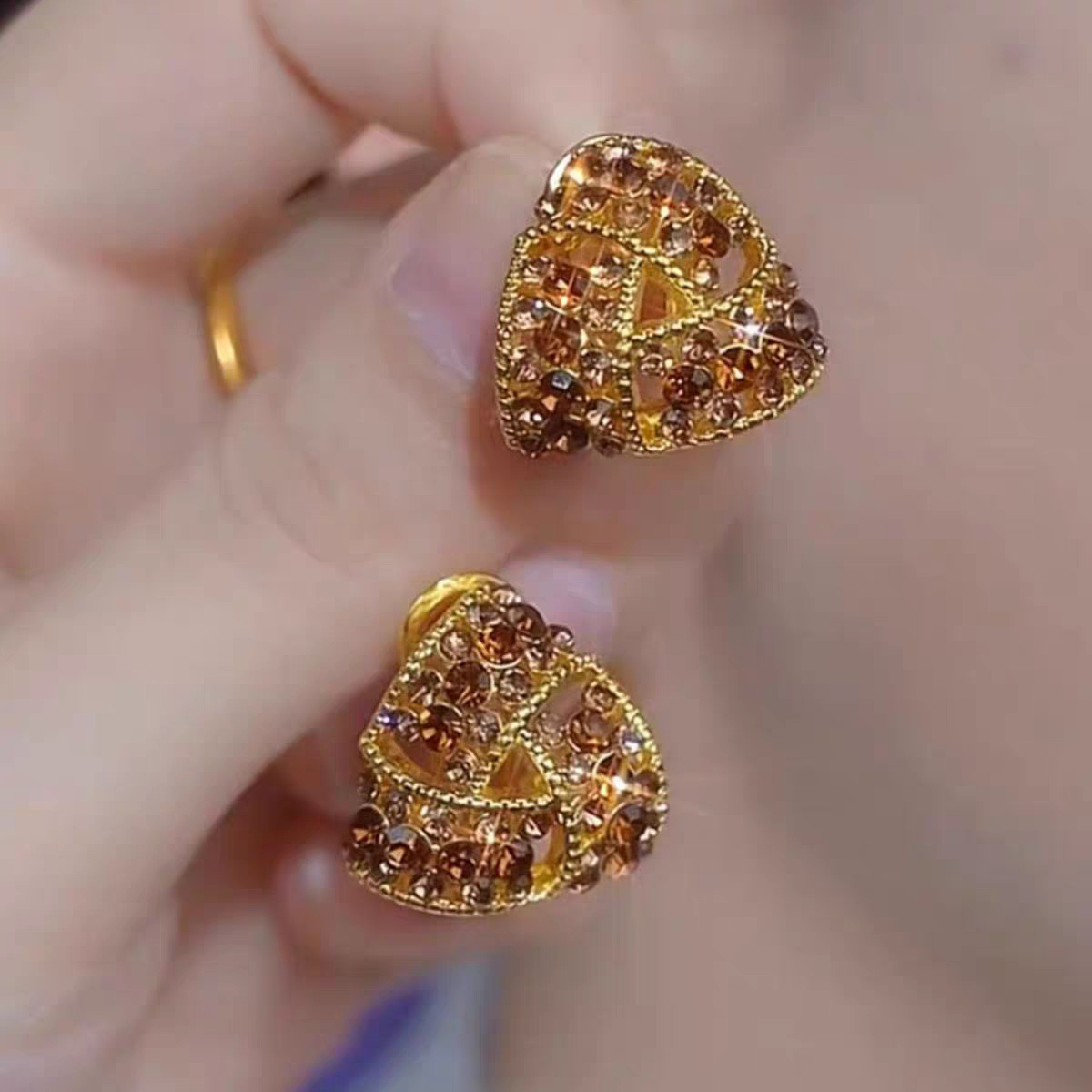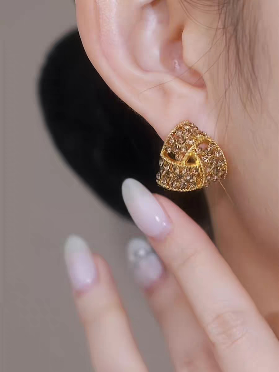 2025新款焦糖色三角形满钻耳夹耳环女秋冬款设计感洋气精致耳饰品 English | 投诉