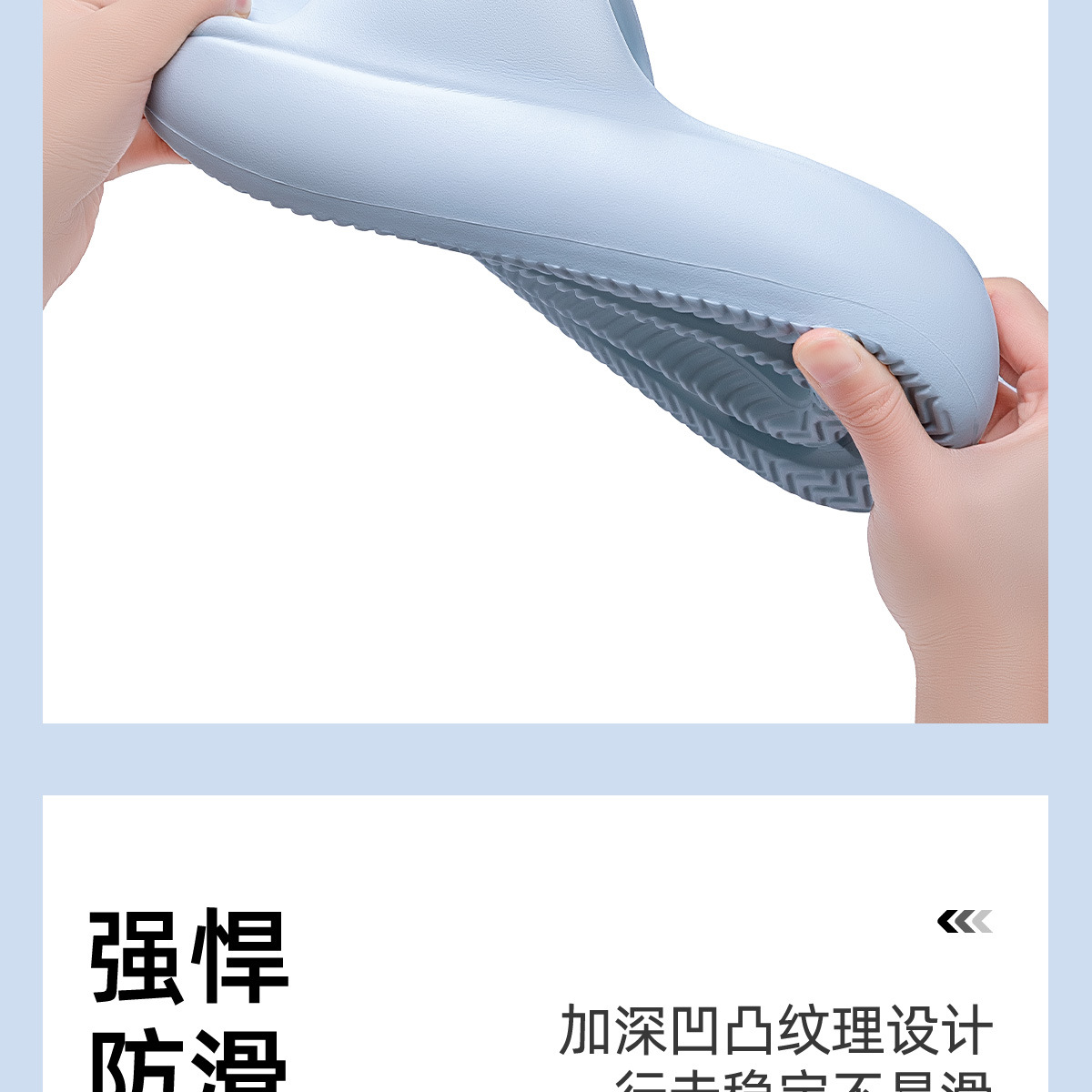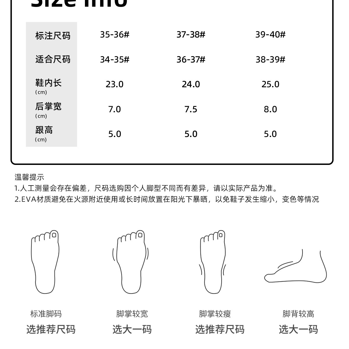 温馨提示:EVA材质拖鞋需避免高温暴晒,长时间高温会导致鞋子产生变形。
