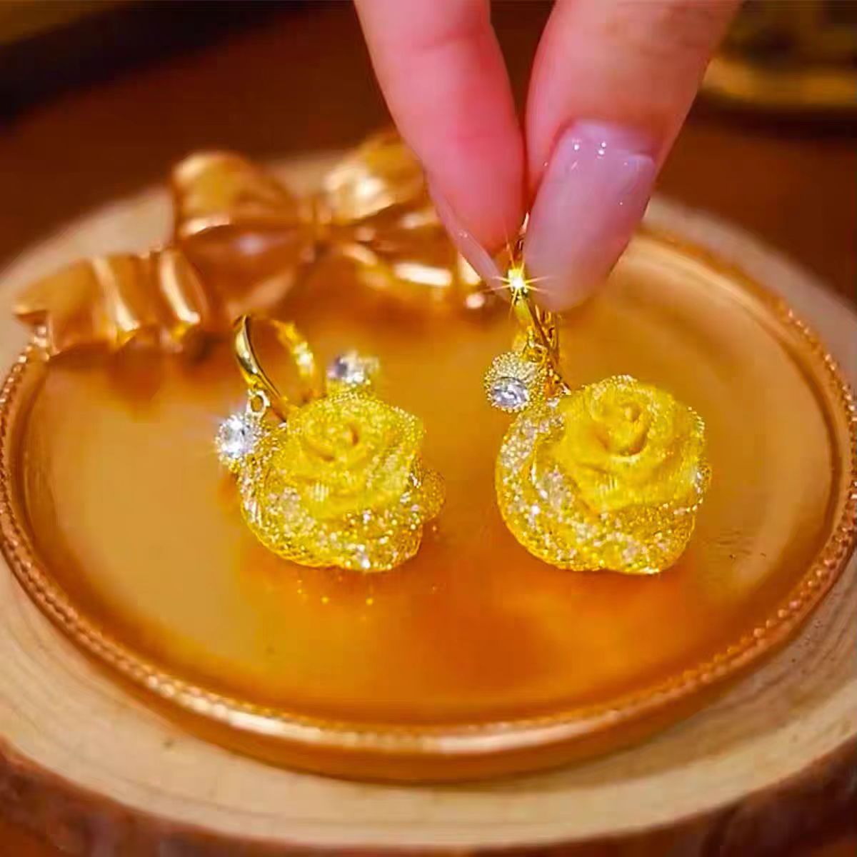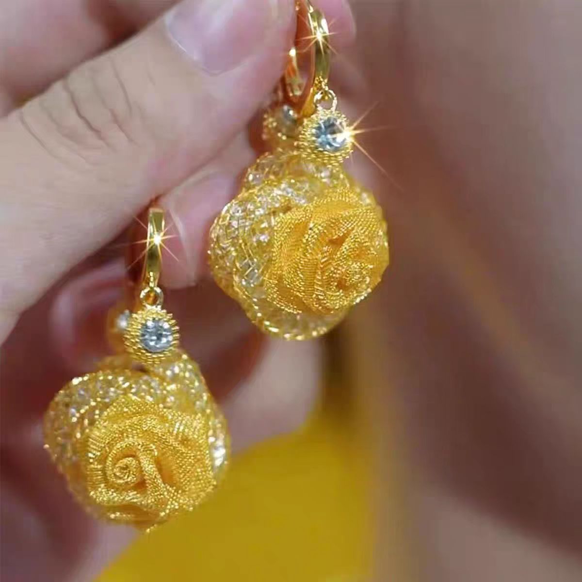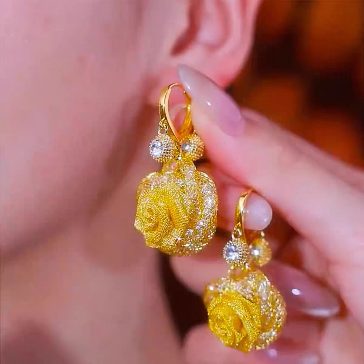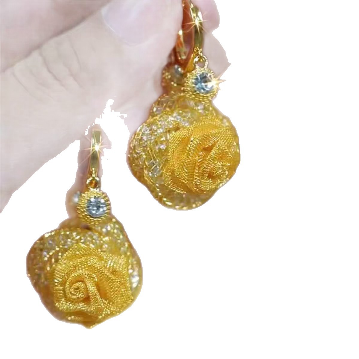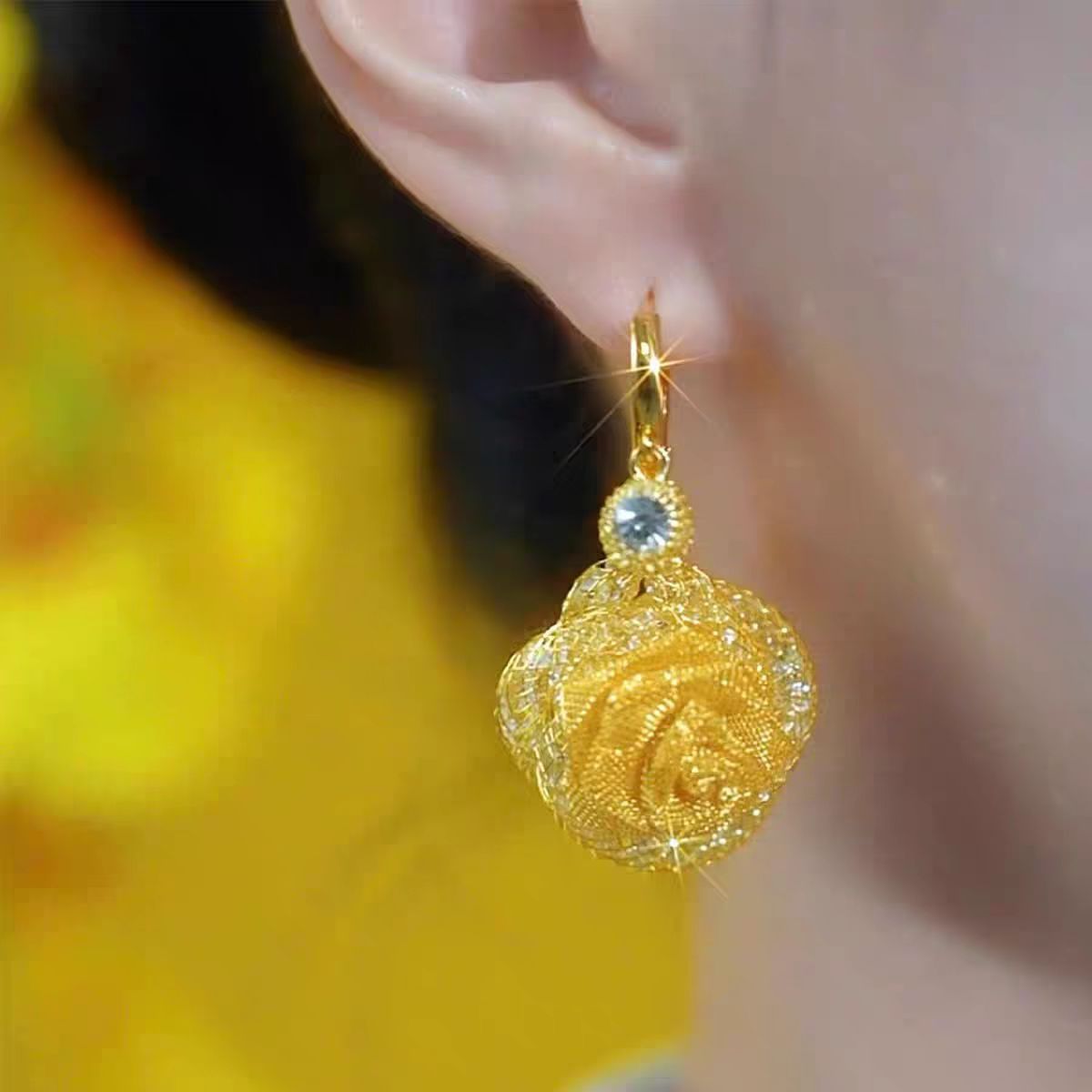 复古轻奢超闪网状碎石玫瑰花耳钩温柔优雅名媛风网红设计感耳饰品 English | 投诉